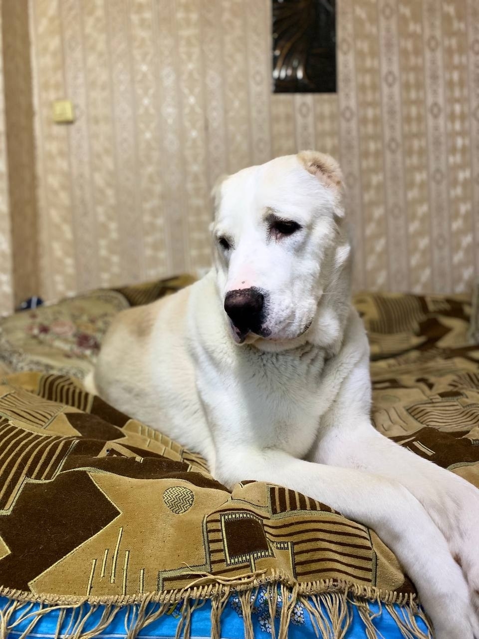 Молодой кобель, выращен в любви и заботе. Рос в семье, прекрасно относится к детям, оберегает и играет осторожно. Жил в доме, на веранде , всегда с людьми.