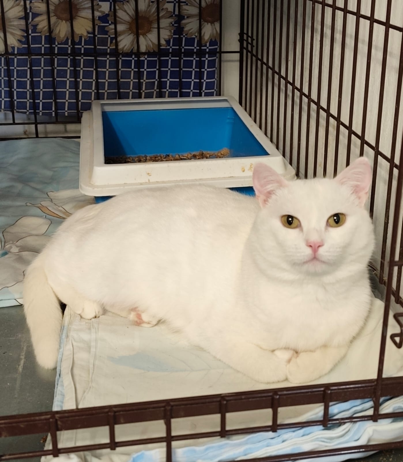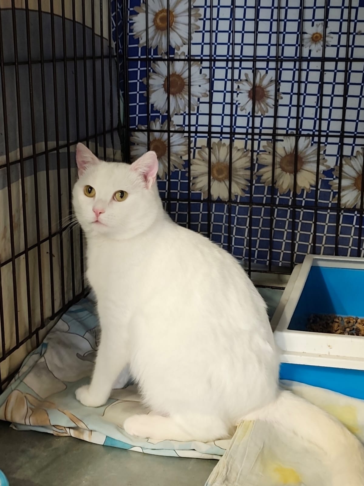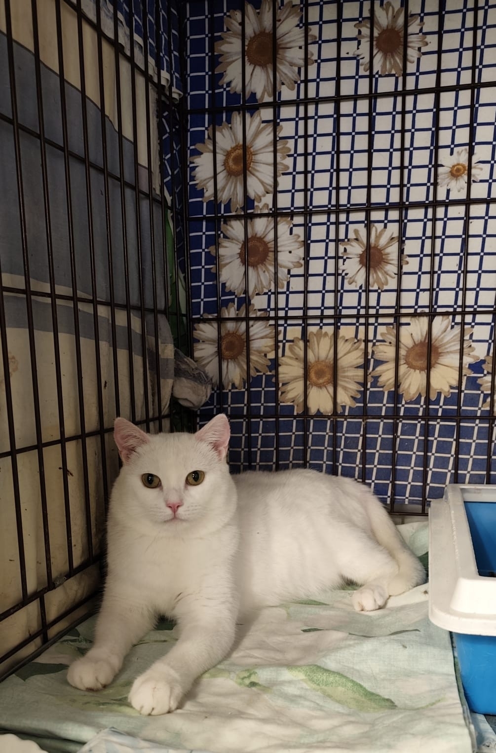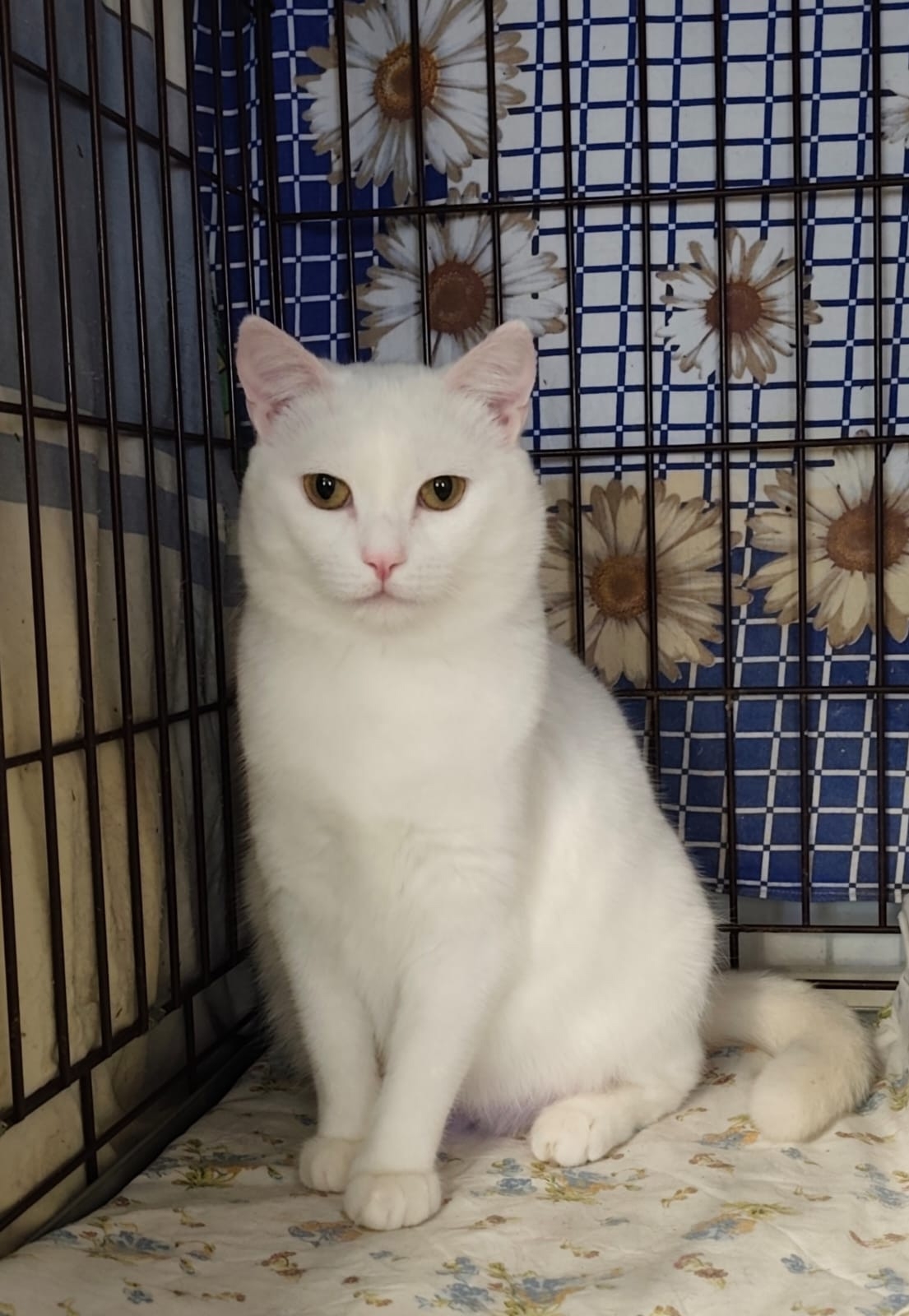 Возраст Снежка – примерно 2 года. Мальчик кастрирован, обработан от паразитов и приучен к лоточку с наполнителем на 5+.