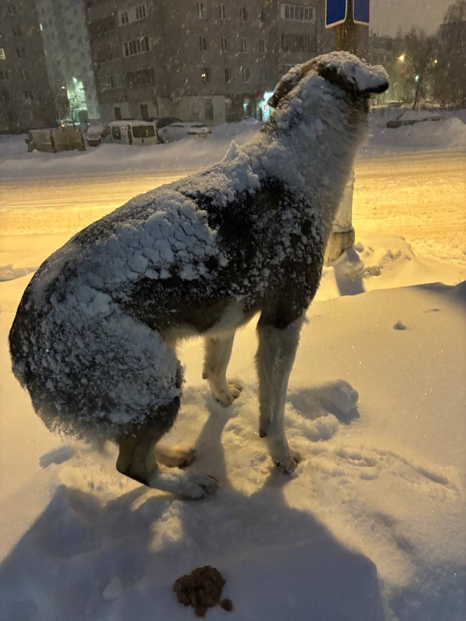 Уже почти неделю на одном месте и мороз -22 и метель. Ничего не ест. То ли потерялся, то ли выкинули.