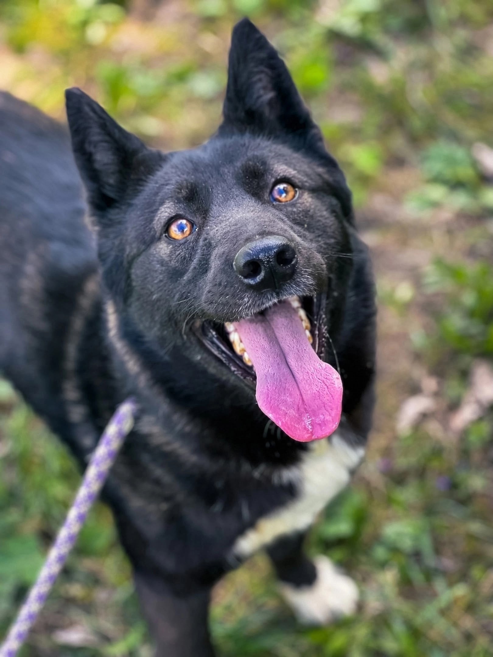 По характеру я очень дружелюбная, игривая и позитивная девчонка. Неплохо хожу на поводке. С собаками не задираюсь.