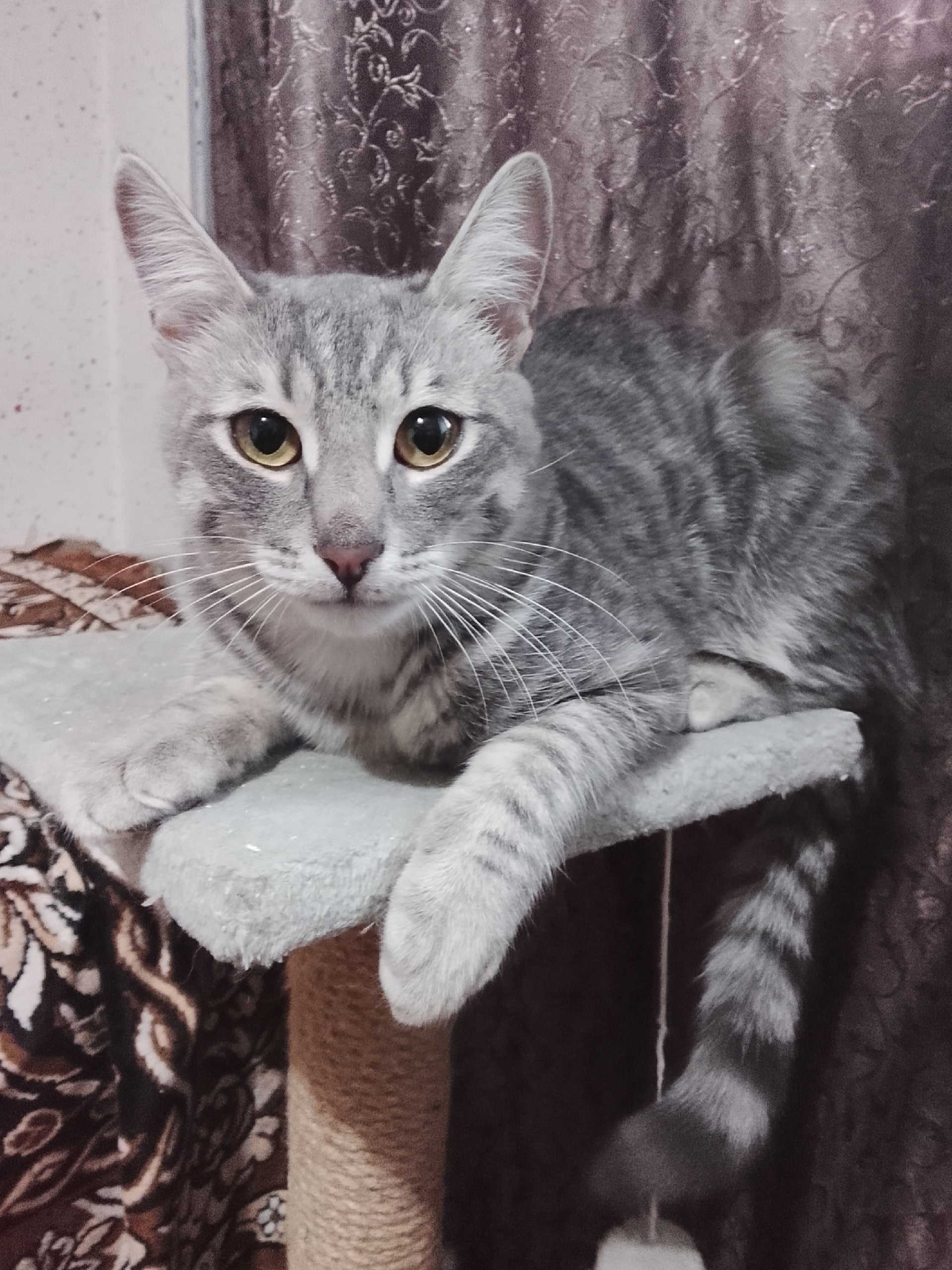 Этот красивый парнишка был спасён с улицы. Теперь он ищет добрую хозяйку. Подросток. В меру игрив, но уже не безобразник, воспитан, ходит в лоток. Имеет отменный аппетит и очень красивый редкий окрас в виде светло-серых тигриных полосочек. Обещает вырасти шикарным котом. Очень умненький и сообразительный. Есть только один недостаток: очень тяжело привыкает к новым людям. Подходит для жизни в квартире без самовыгула. Приходите знакомиться 8 987 712 96 84 Йошкар-Ола