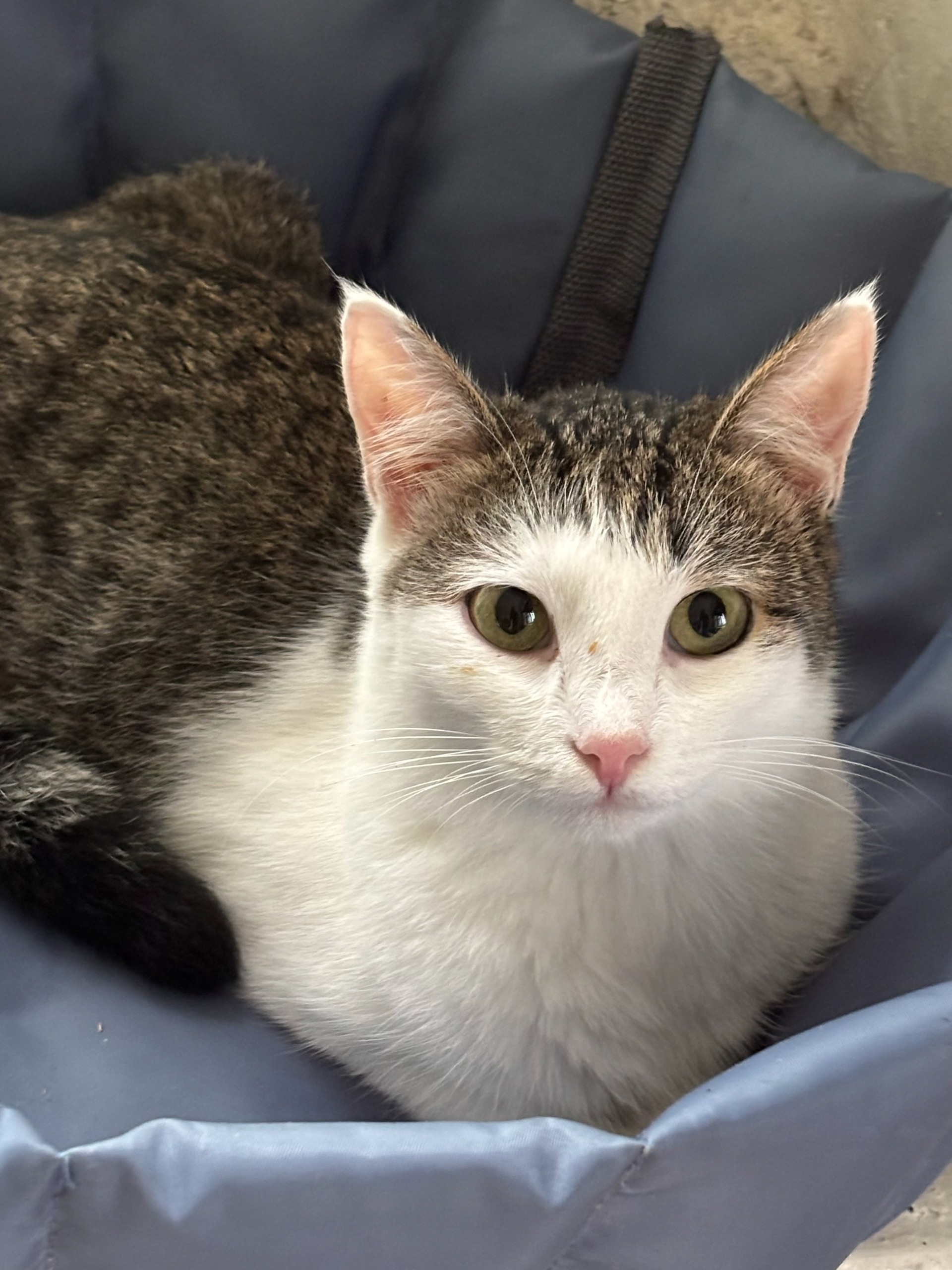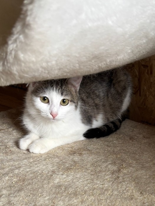 Эту кошечку мы забрали из глухой деревни. К дому пожилого мужчины прибилось много животных, но у него не было возможности справляться со всеми.