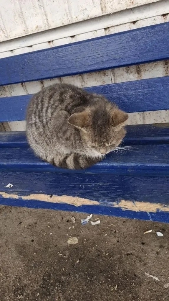 Кот (кошка) сидит на остановке 5й день.