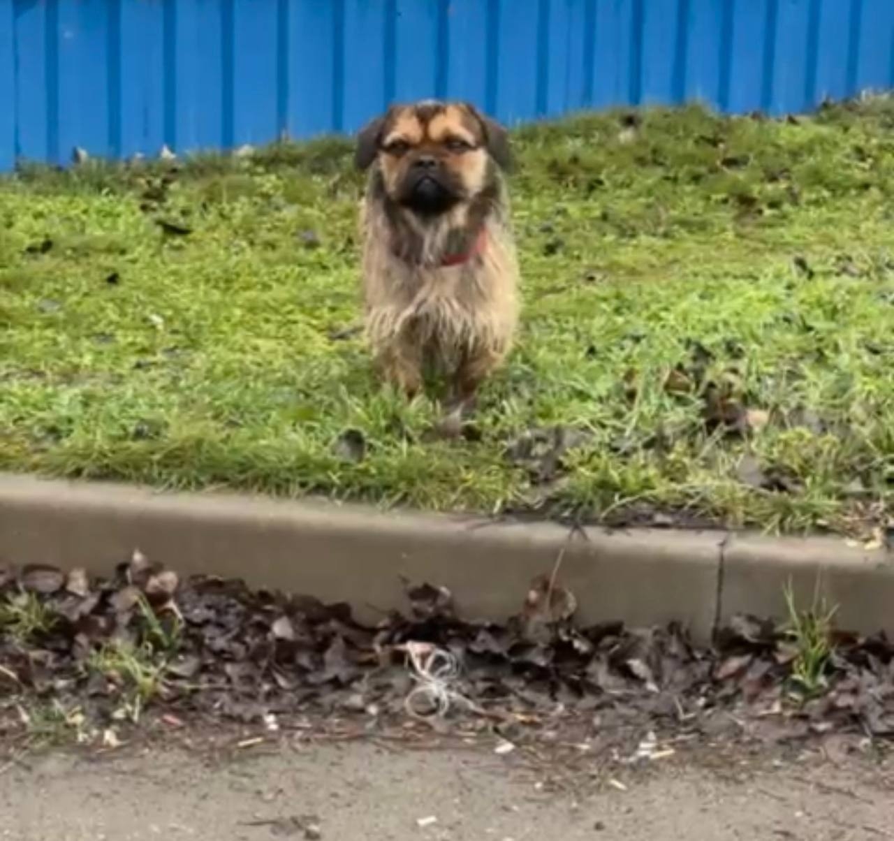 Нашли собачку с красным ошейником (похоже, девочка). Покормили, пытались поймать, но она близко не подпускает — сидит и дрожит.