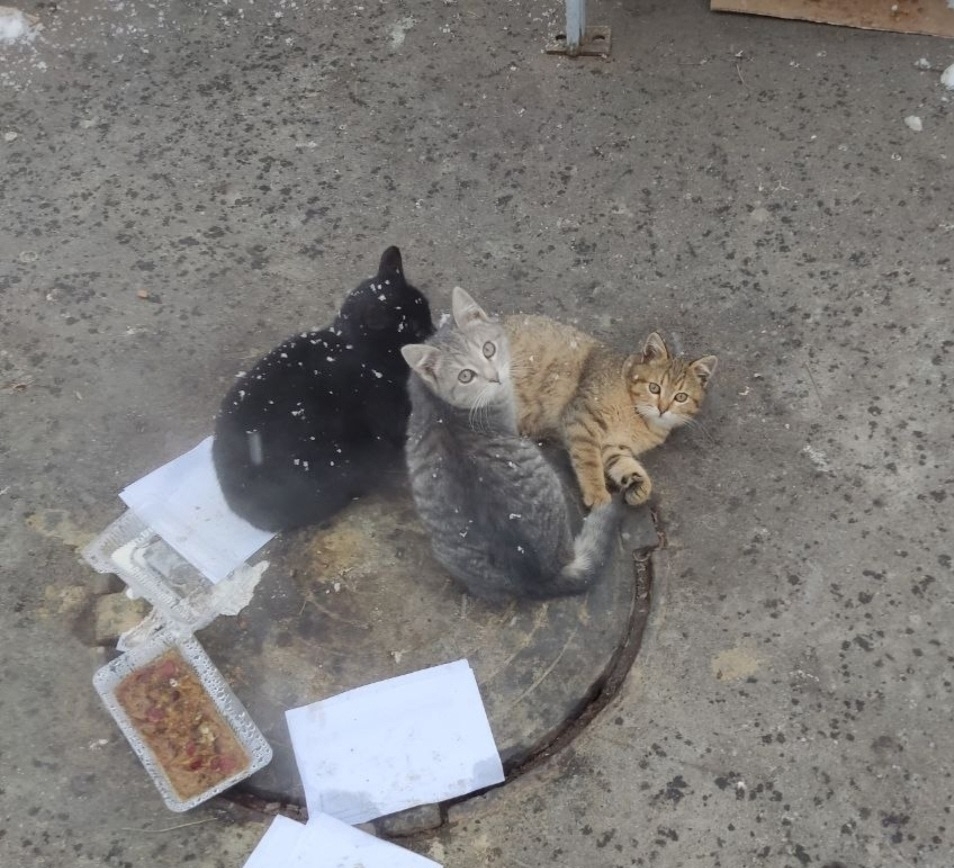 На рынка автовокзала выживают три кошки. Их подкармливают, но на улице очень холодно, укрыться им негде.