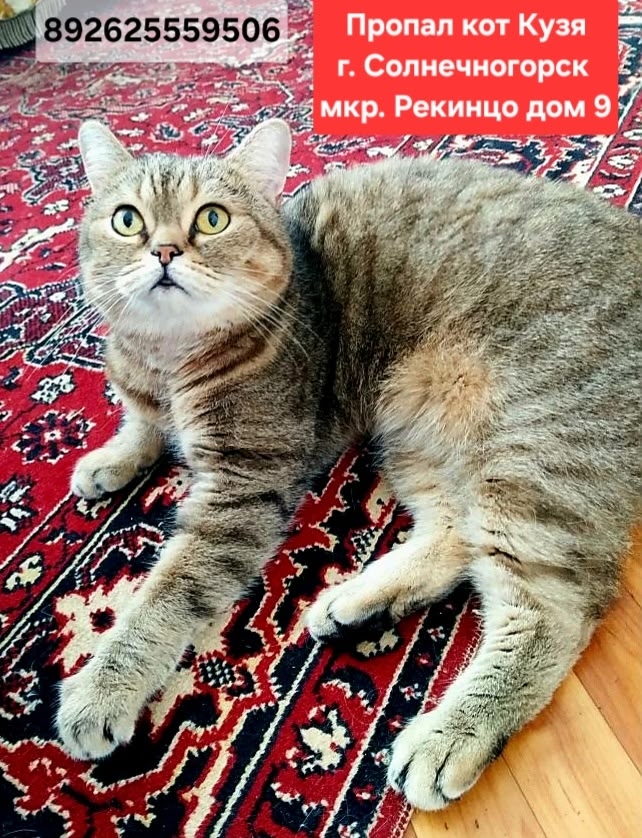 г. Солнечногорск, #Рекинцо, дом 9 Пропал кот Кузя, кастрирован,..
