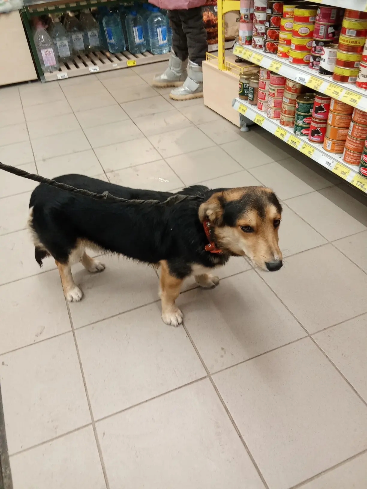 Может хозяйку/хозяина скорая забрала или что-то случилось ,что собака не уходит и пытается попасть в магазин.