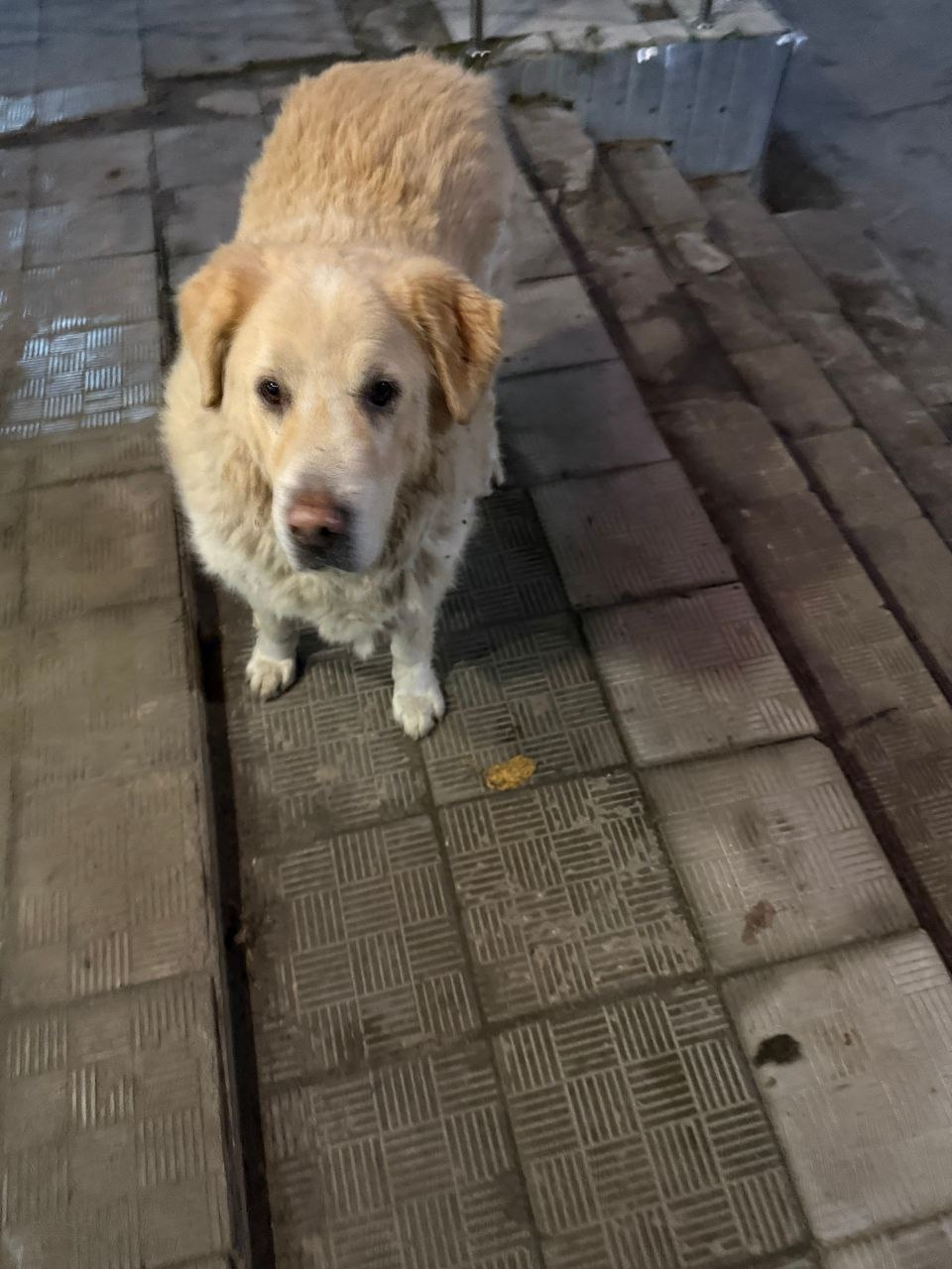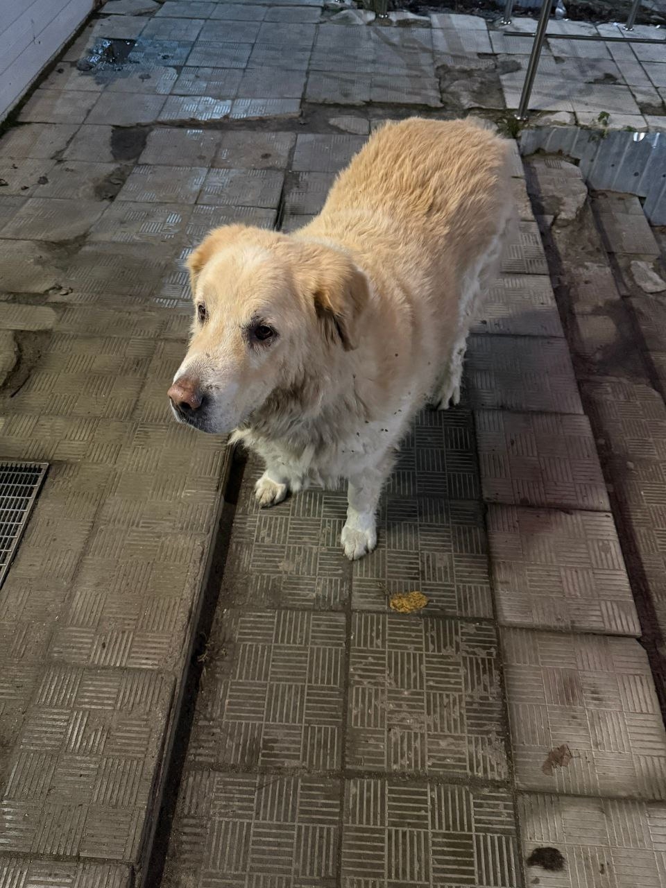 Хорлово, пятерочка возле церкви. Собака с ошейником похожа на золотого ретвиллера, знает команды. Хозяин отзовись