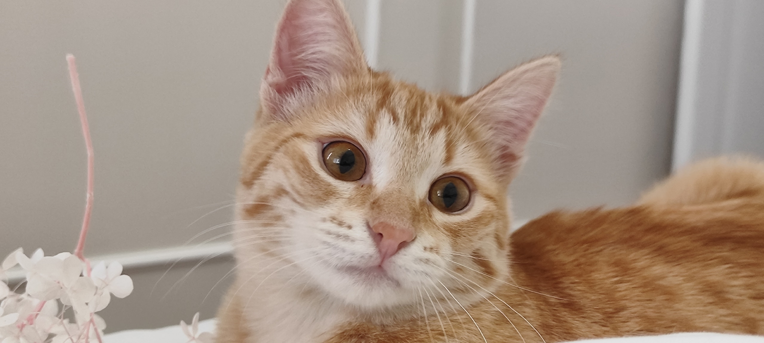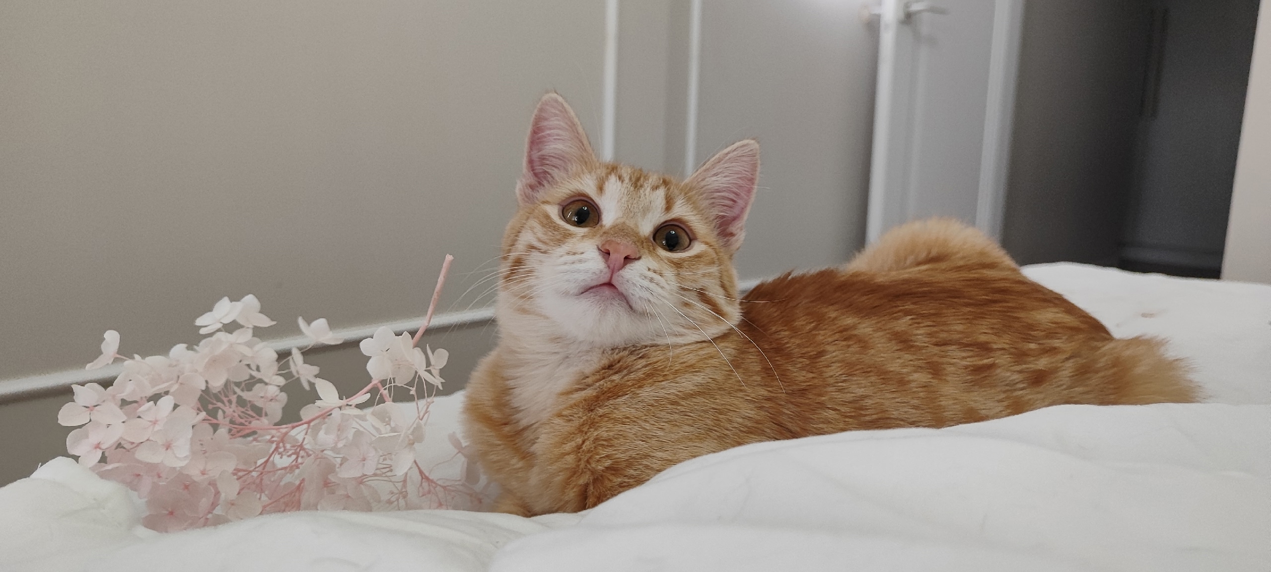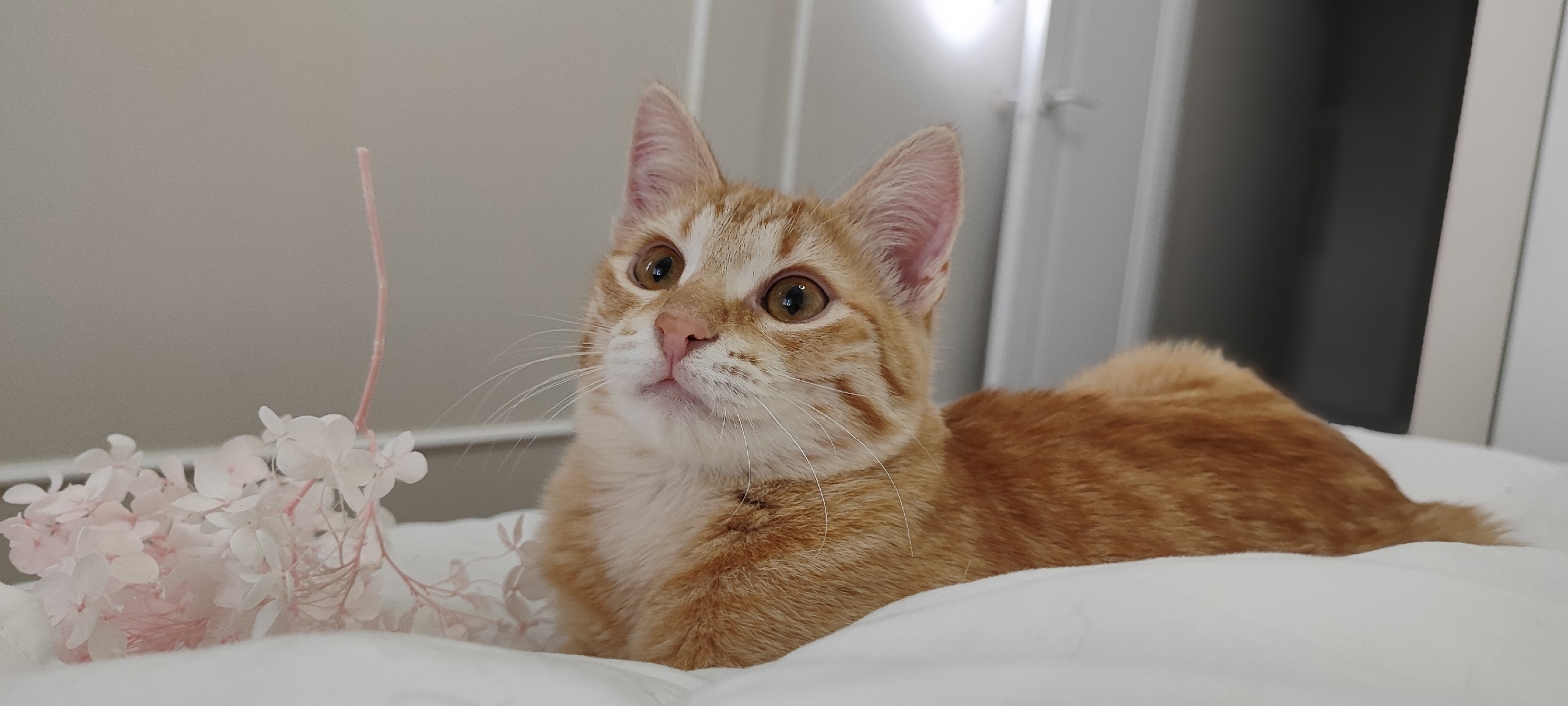•  Персик – это огненно-рыжее чудо с огромными, выразительными глазами и удивительно приятной, мягкой шерсткой. Мягкий и нежный комочек счастья!