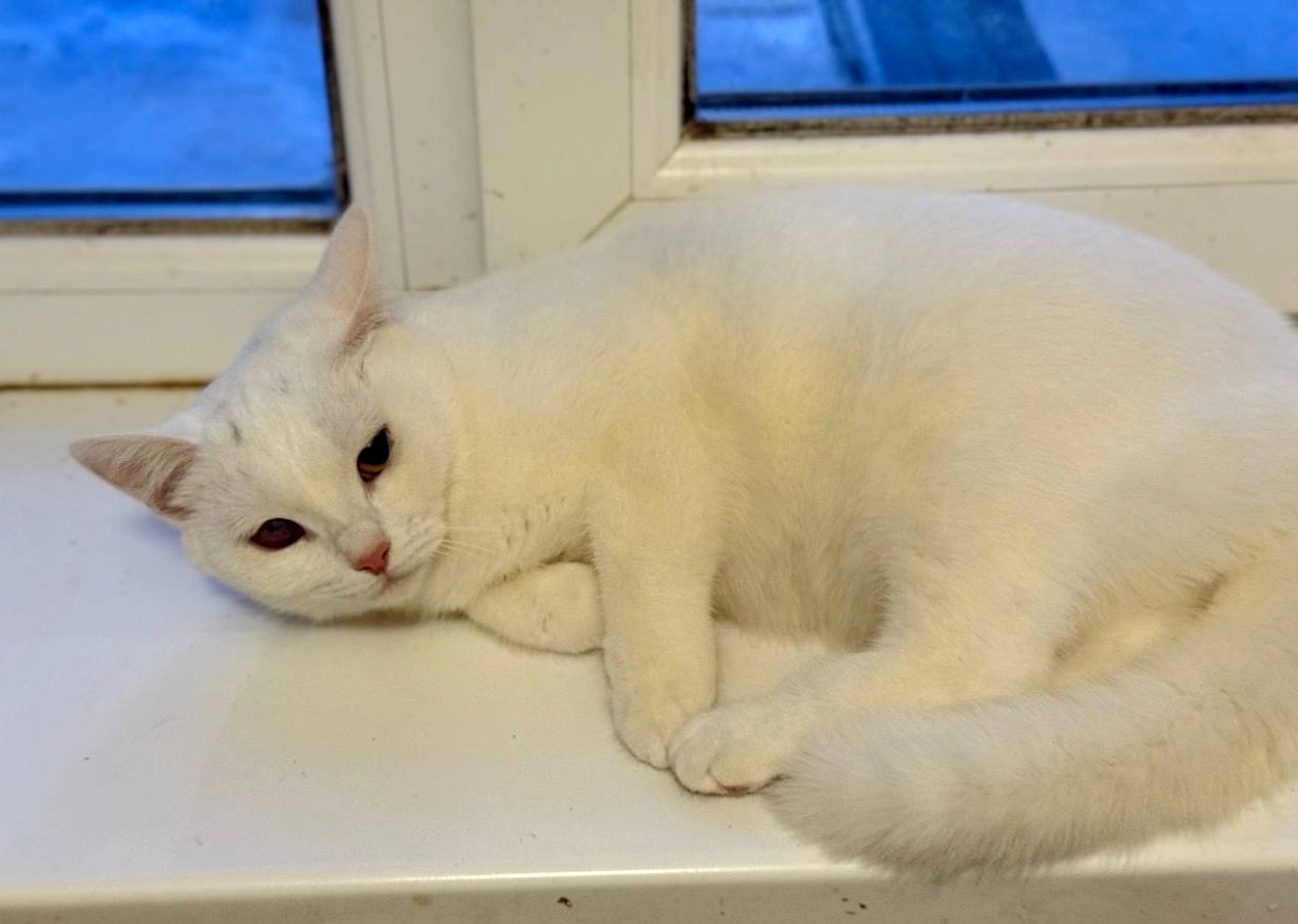 Кошечка Снежа была спасена с улицы. Сейчас она на временной передержке.