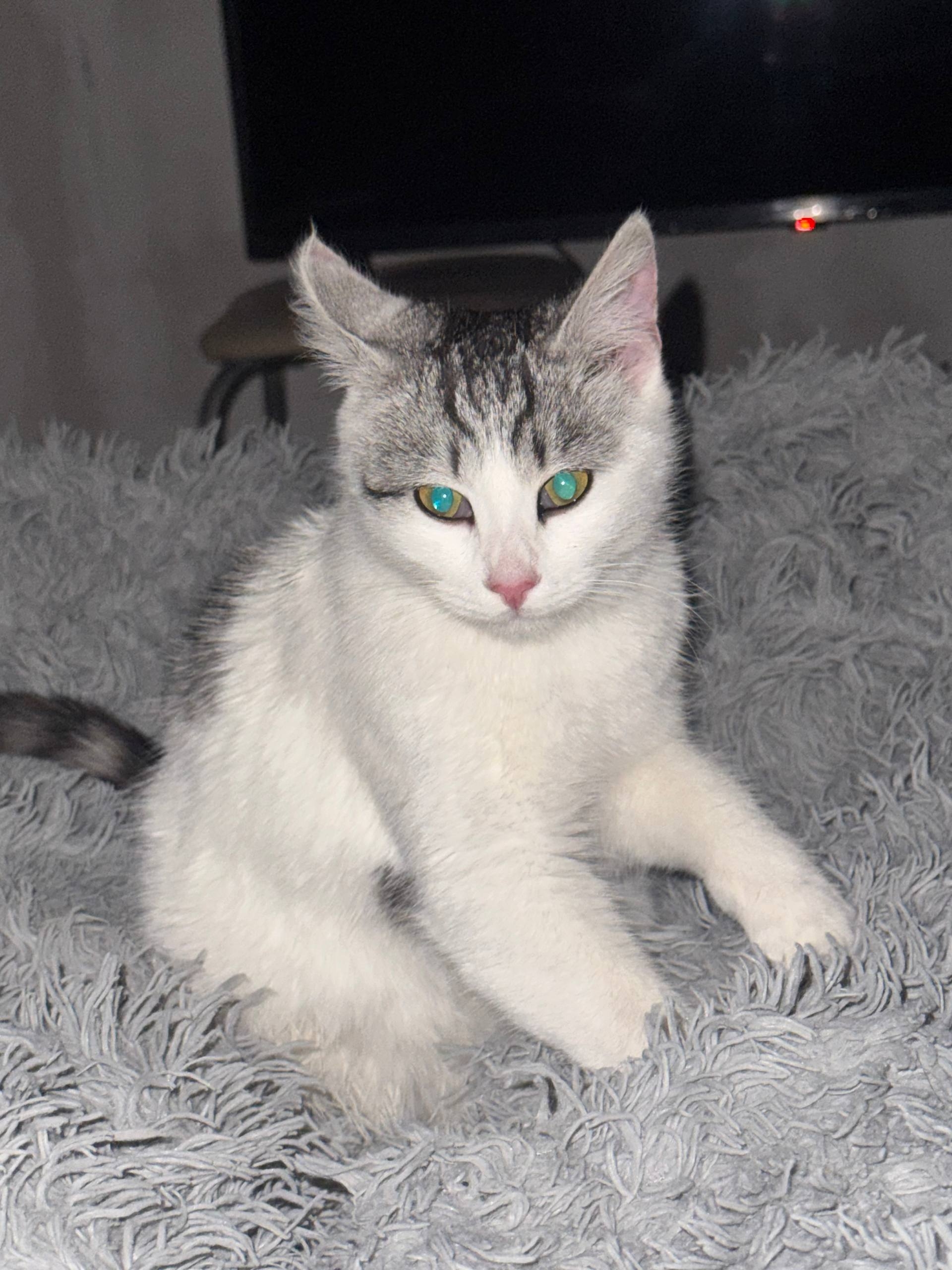 Нашли маленькую кошечку – ей примерно 6–7 месяцев. Девочка, видно, что она была домашней: чистая, ухоженная, нежная и доверчивая. Прибилась к людям, не смогли пройти мимо и взяли к себе временно, чтобы помочь. Очень ласковая, спокойная, никогда не кусается и не царапается. С первого дня ведёт себя, как будто всегда жила в доме.