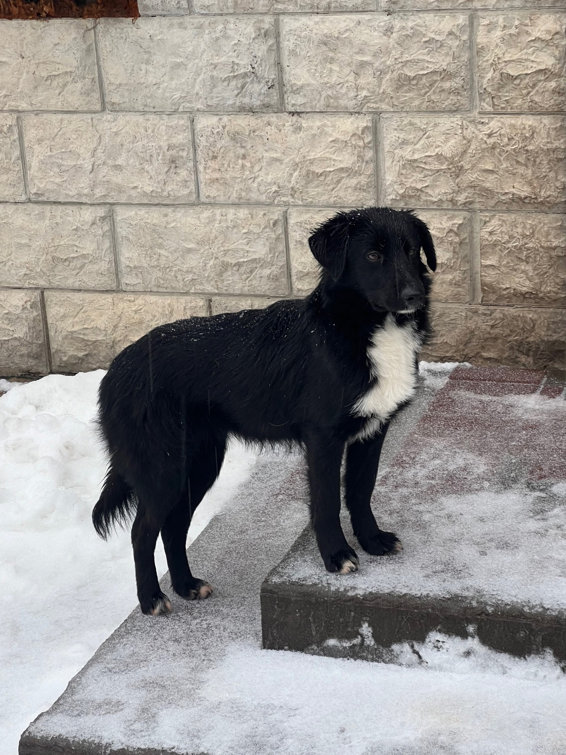 Окрас: мальчишка у нас чёрный с белой грудкой. И очень аккуратной мордочкой;