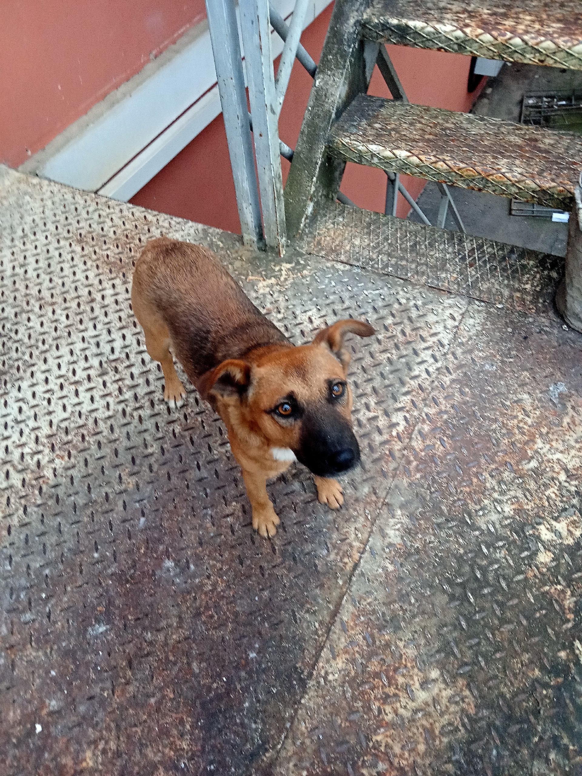 Ищем новых хозяев❗На работе прибился кобель подросток.Был пугливый и голодный,кормим вторую неделю,но впереди зима.Пока он живёт в кустах во дворе, никуда не уходит.Очень добрый и любит ласку.