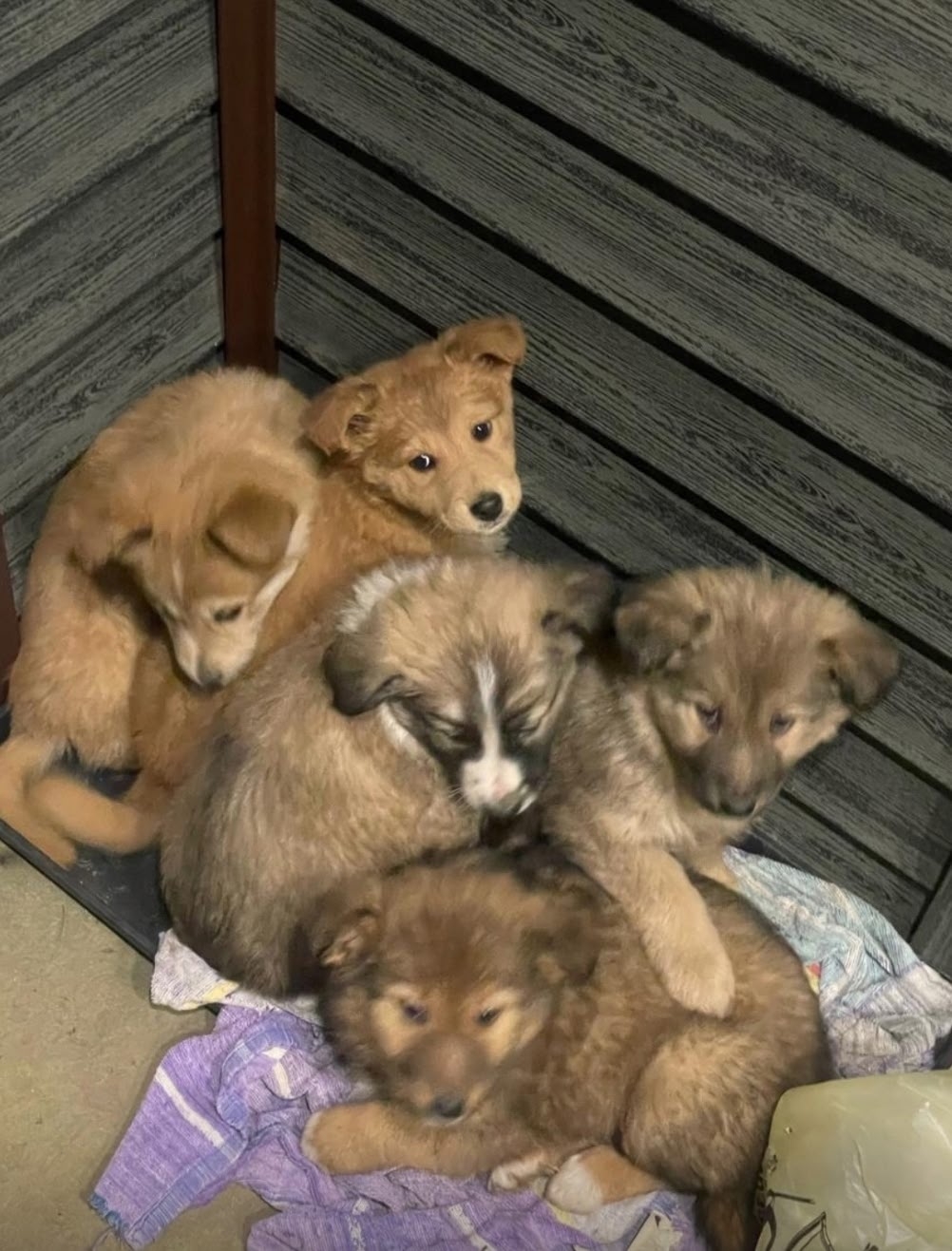 Ищем помощи в пристройстве 5 щенков!!! Подкинули на дачу, где никто не живёт! Ездить кормить некому, все работают. Щенки позоже домашние, ласковые, к людям тянутся, очень их жалко, мёрзнут! Ищем им хозяев или любую передержку
