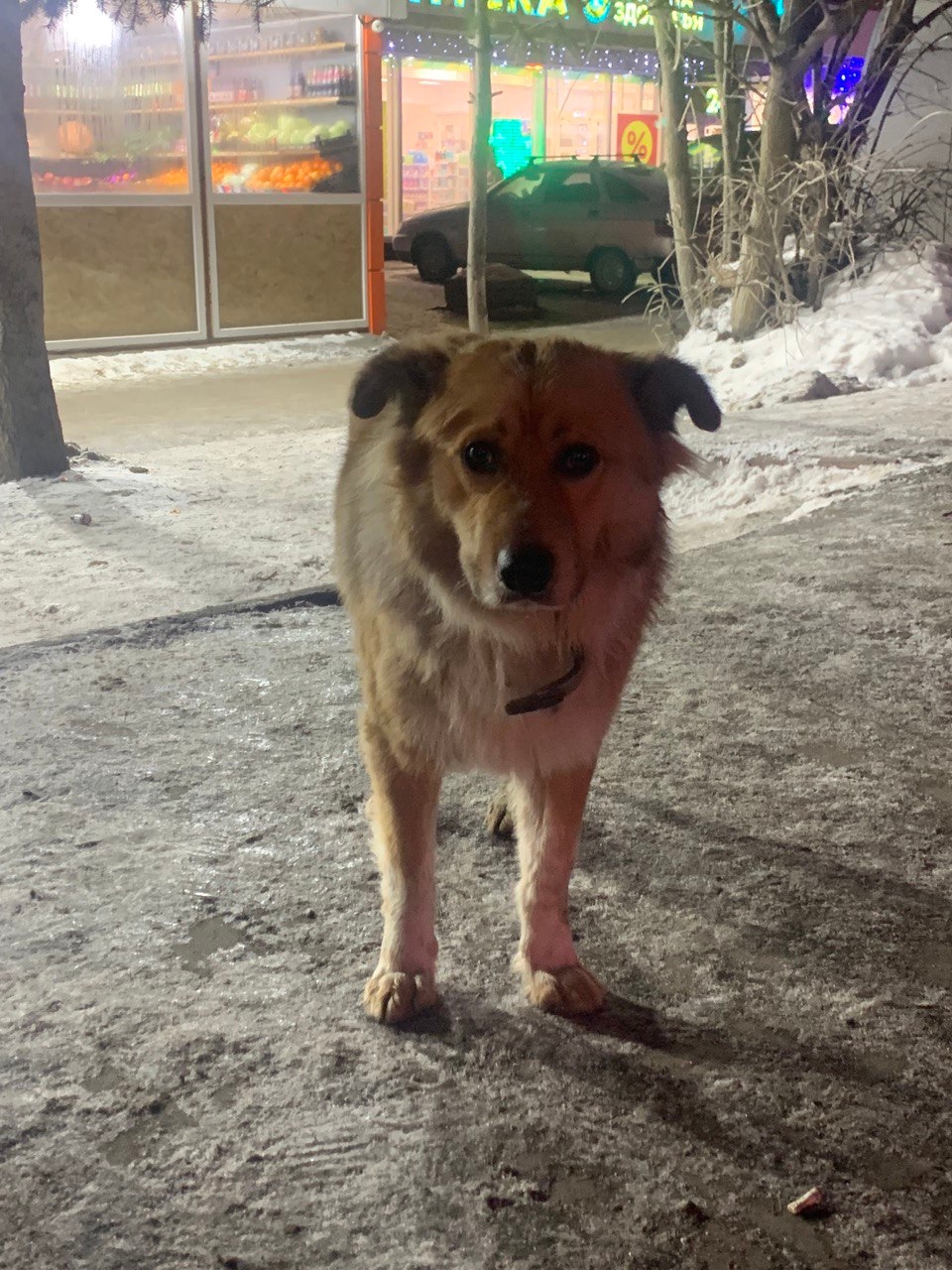 Ищем старого (нового) Хозяина, может кому известно или со временем будет известно (дайте знать) что происходит 🙏 вот собачка находится на остановке океан (на стороне магазина «Океан») ошейник, очень потерянная, не уходит, кружит, присаживается и всматривается вокруг и на машины.
