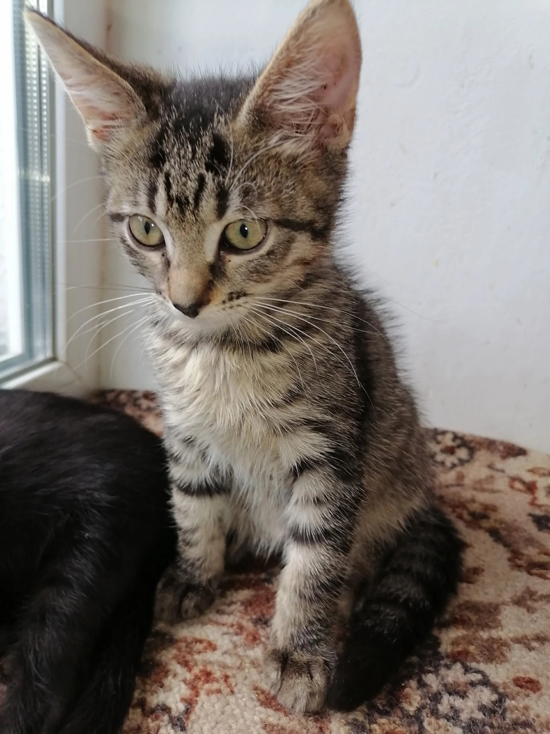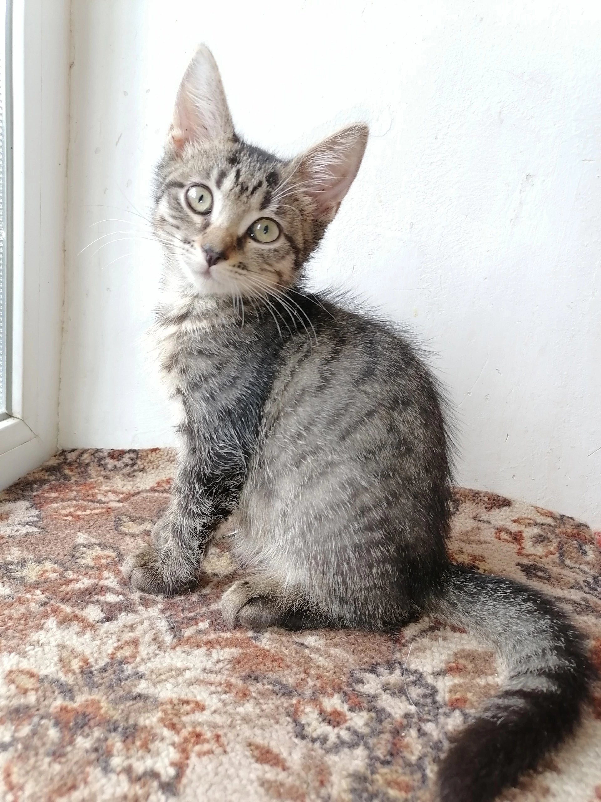 -полосатик, ласковый, коммуникабельный, озорной как все подростки, парень, возраст 2, 5 месяца. Очень любит ручки, ест всё, лоток на отлично, обработан от паразитов.