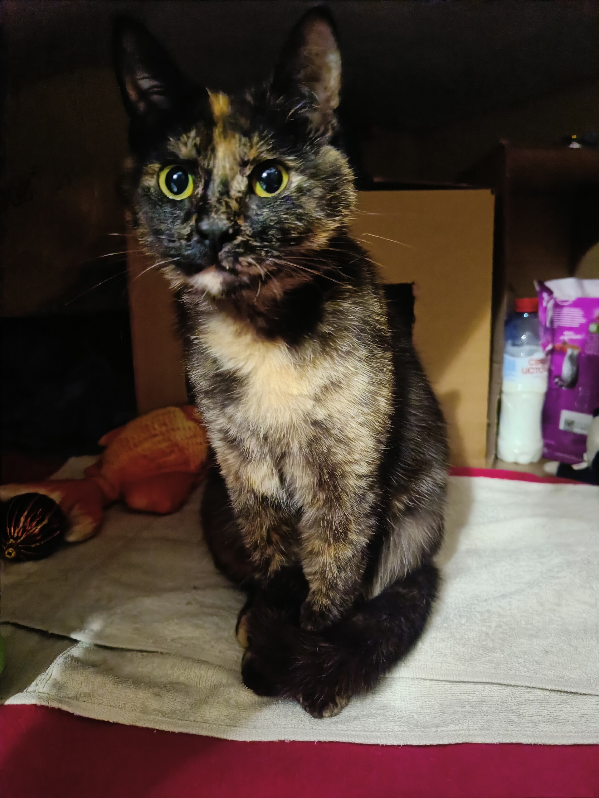 Ищет дом молодая кошка (примерно 1 год). Сидела в подъезде, но жильцы выгнали, теперь она прячется в кустах. К сожалению, передержки нет, поэтому может убежать и не успеем найти ей дом. На вид здоровая. По характеру ласковая, игривая.