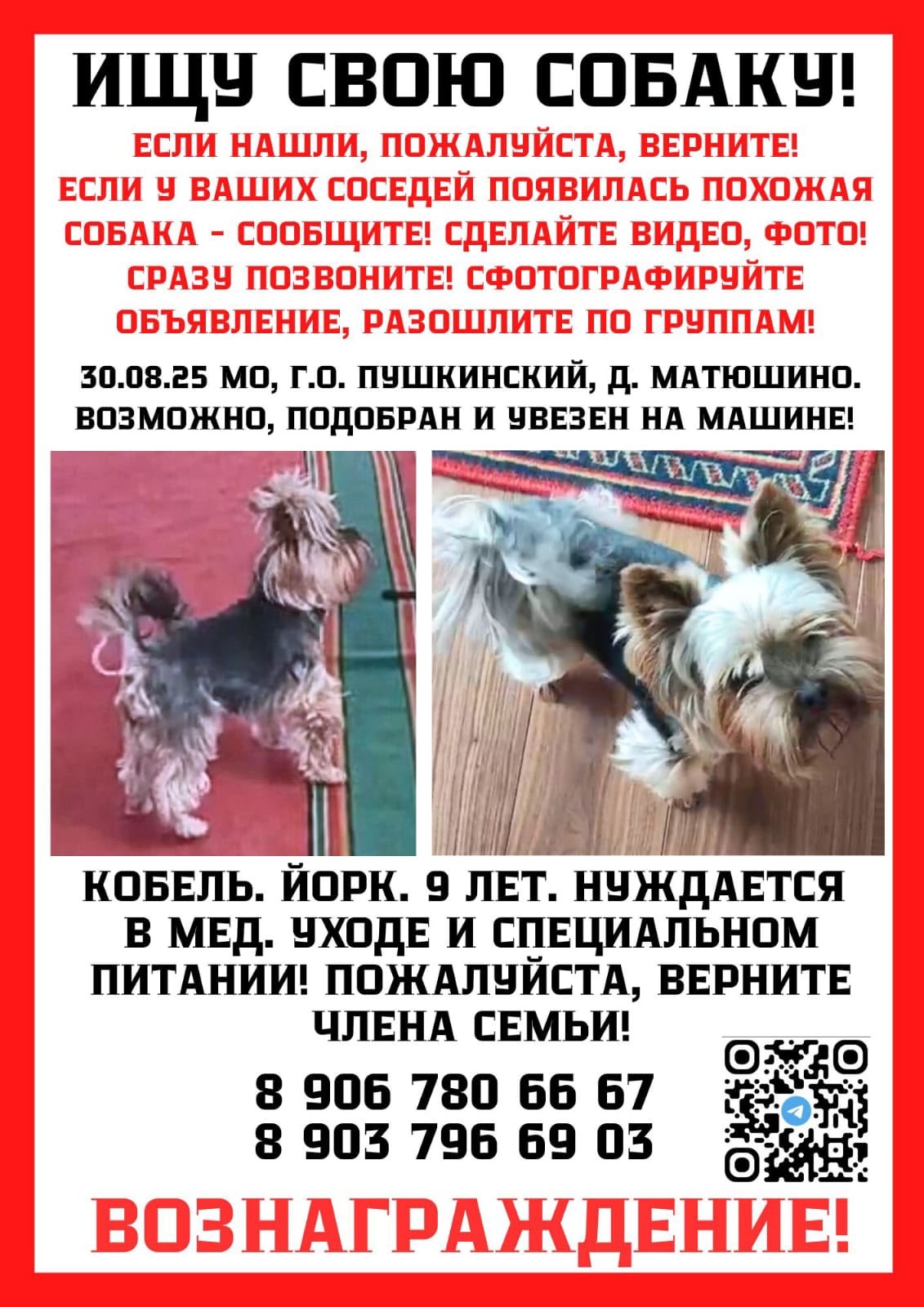 Ищу своего Йорка – члена семьи! Собака возрастная, находится на спец.уходе, не дайте ей погибнуть! Может у ваших знакомых, соседей появилась похожая собака? Звоните в любое время! Верните ЧУЖУЮ собаку, мы вам купим СВОЮ!!! Вознаграждение!