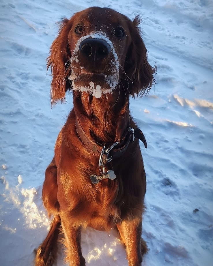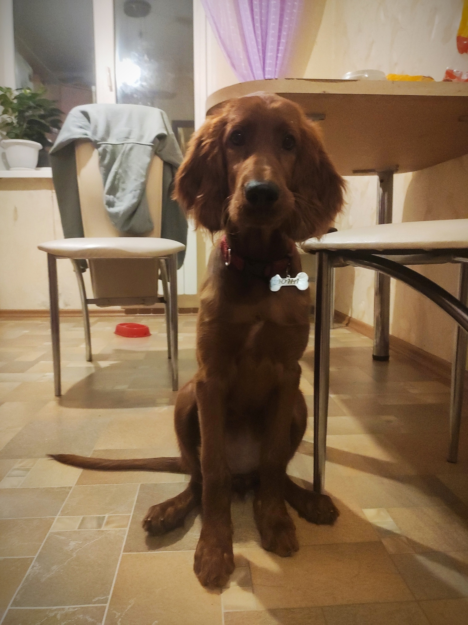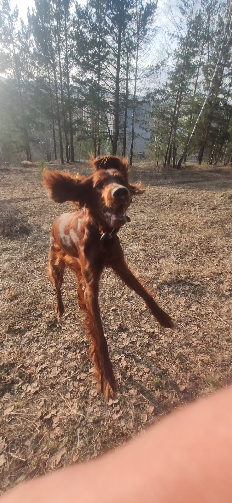 Ищу свою собаку звали Юна Ирландский сеттер У собаки есть белое..