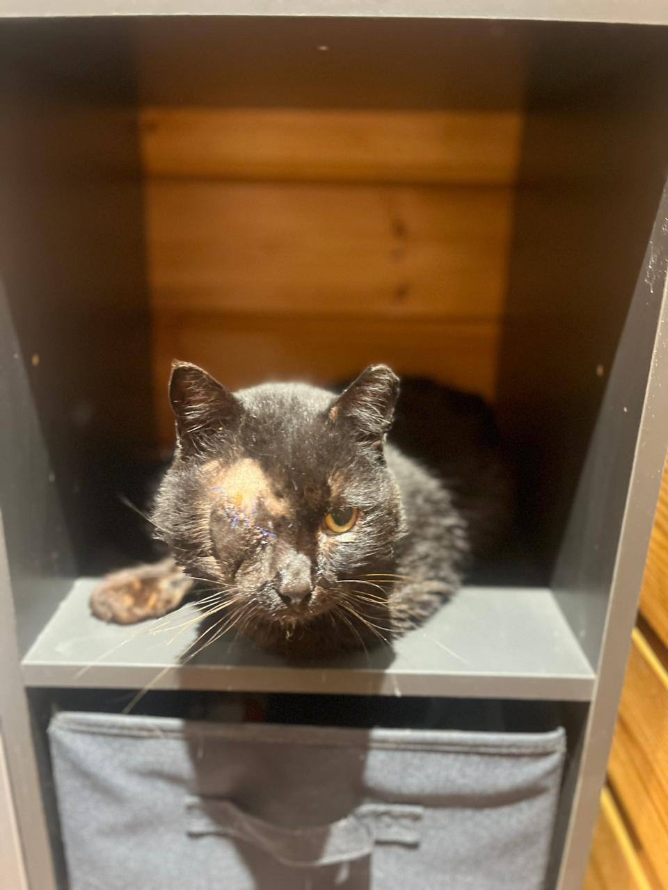Буквально на днях девушка увидела его с травмированным глазиком и повезла на операцию, как только швы снимут, он вернется обратно, так как взять его домой возможности у нее нет.