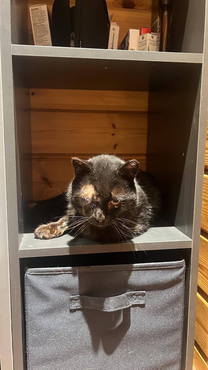 Ласковый котик, спокойно отловили и посадили в переноску. Дает делать обработки глазика, ведет себя хорошо.