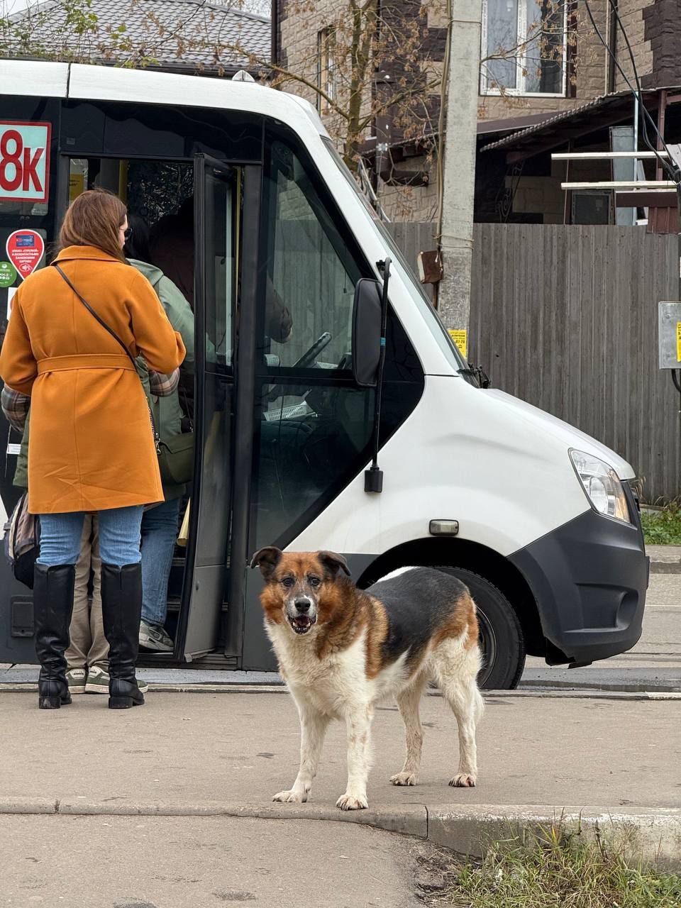 Кабель на остановке со стороны старой Опалихи к станции . Людей не боится. Голодный .