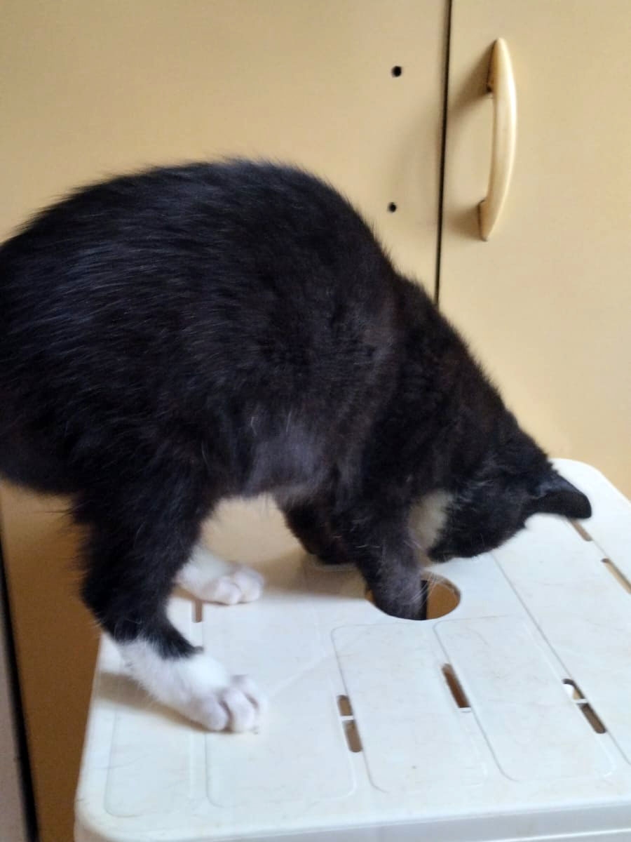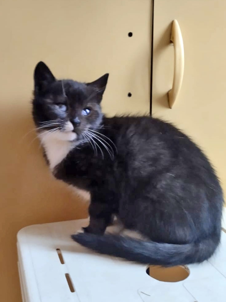 У Моти плохо видит правый глазик, но он видит! Левый глаз видит отлично и возможно, слишком много) т.к. киса резвая, бесстрашная, ни в чем не уступает другим котятам на передержке, а в некоторых моментах и превосходит всех по ловкости!