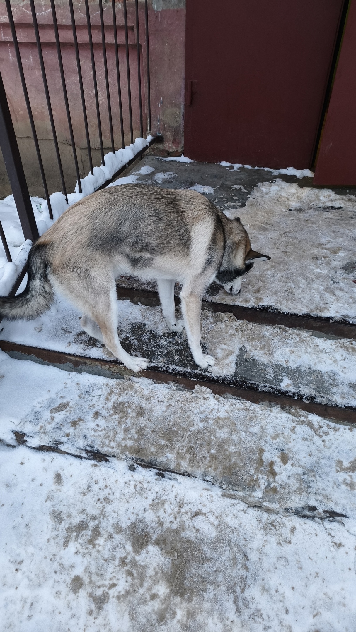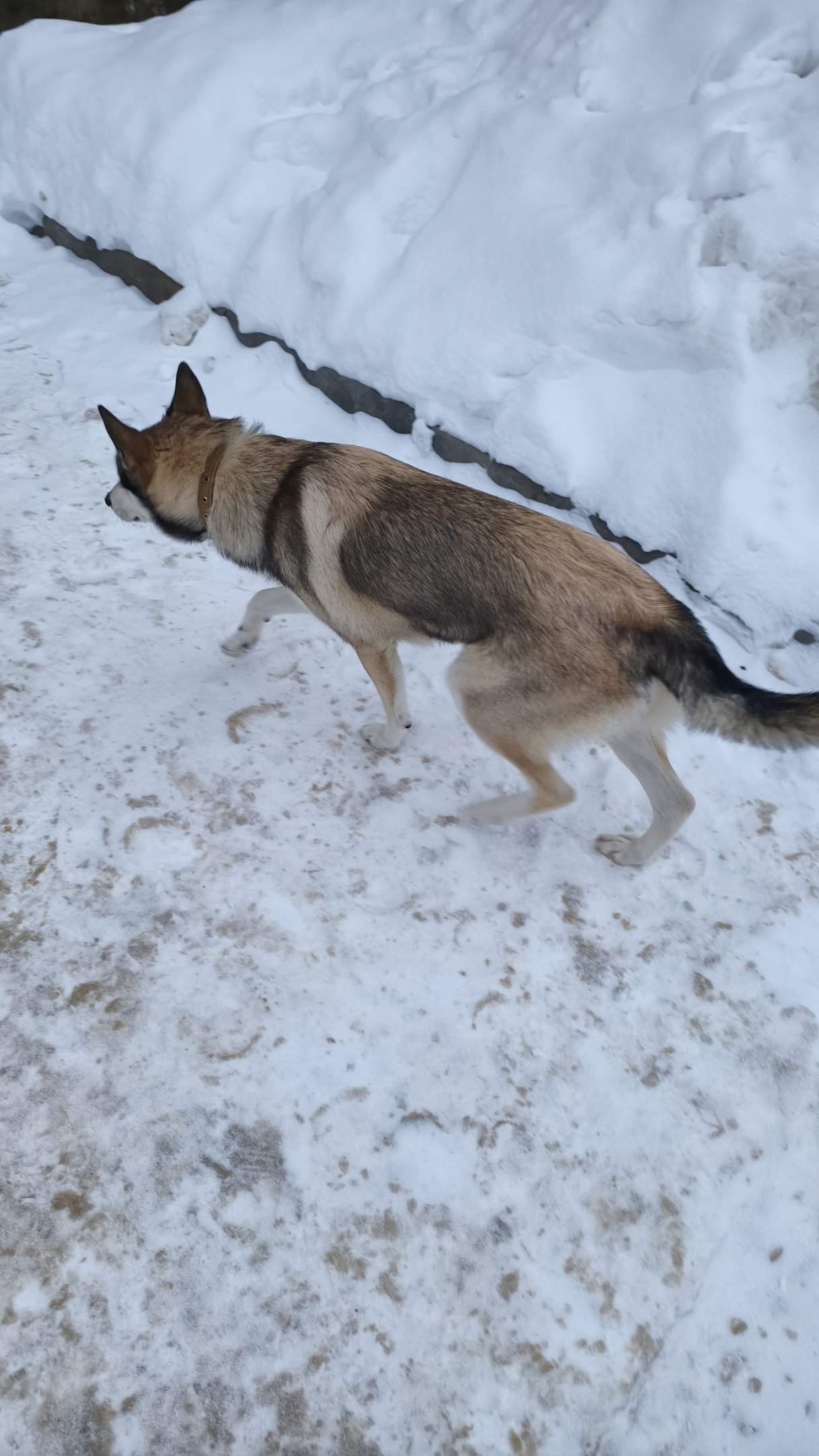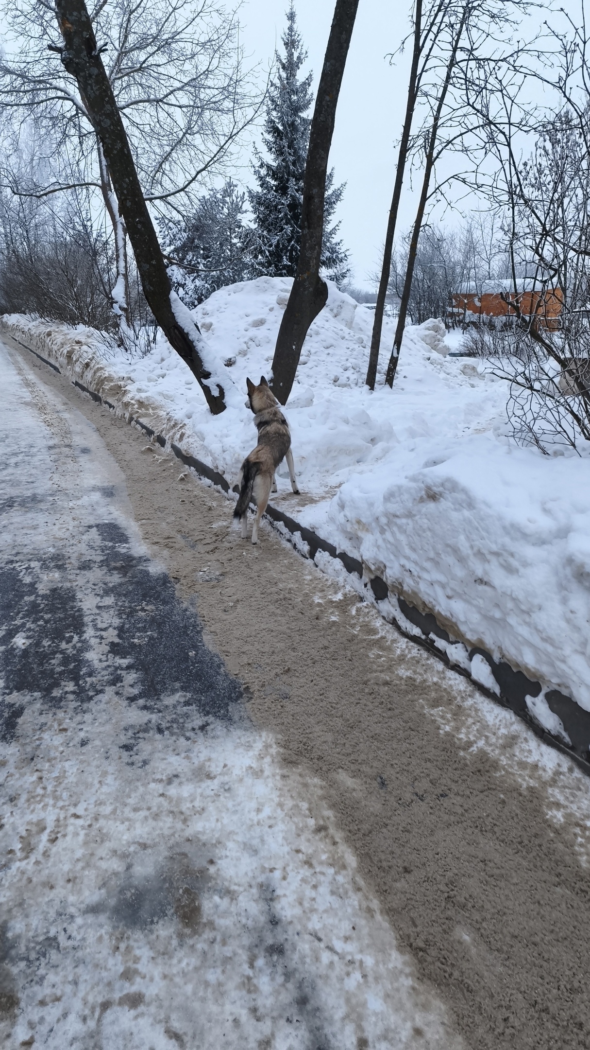Около недели назад, может чуть больше, появились две собаки, фенотип хаски/лайки. Пол неизвестен,очень быстро убегают, еле удалось сфотографировать.