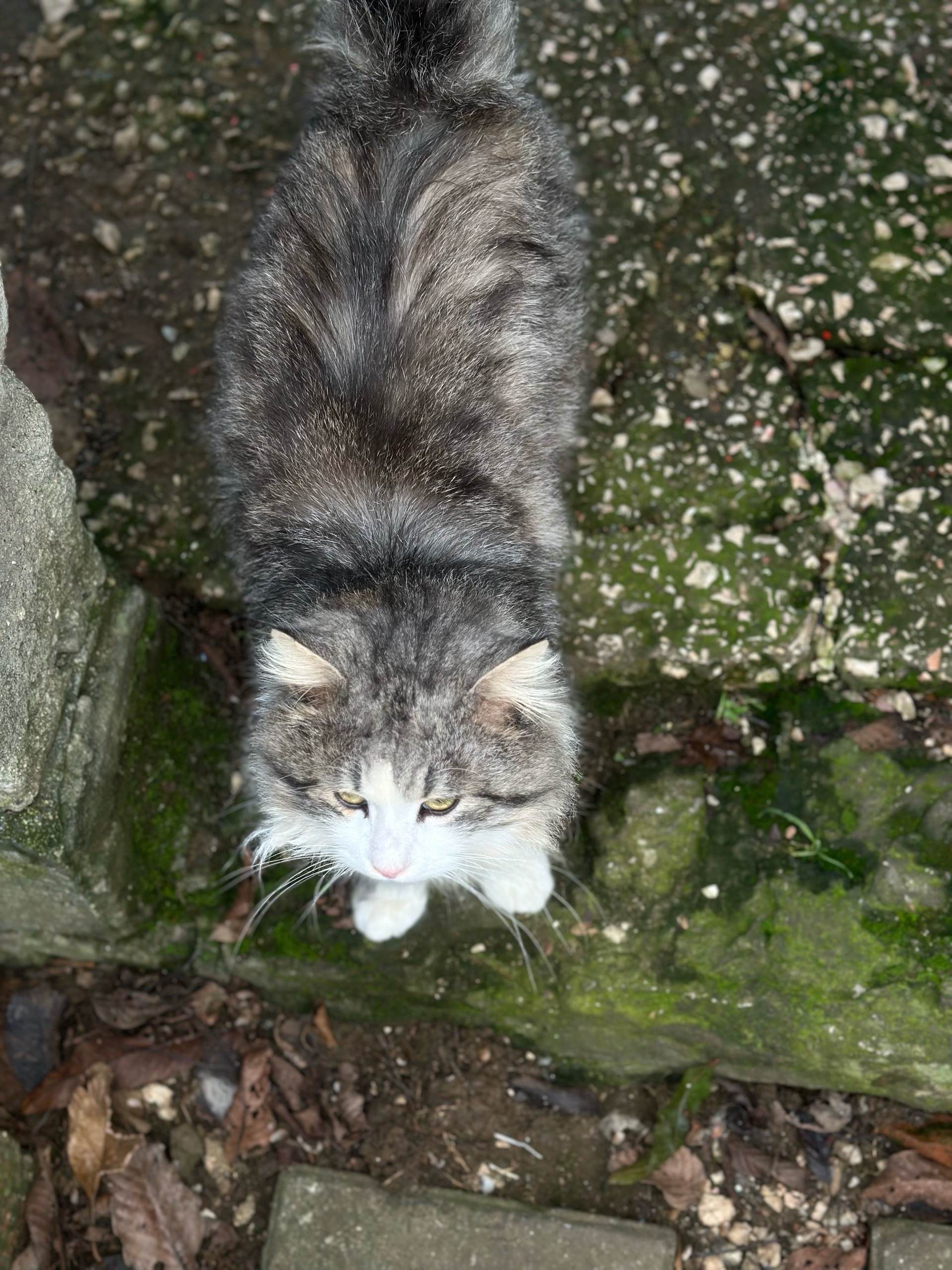 К маме во двор приблудился кот, абсолютно домашний, крупный и очень красивый)