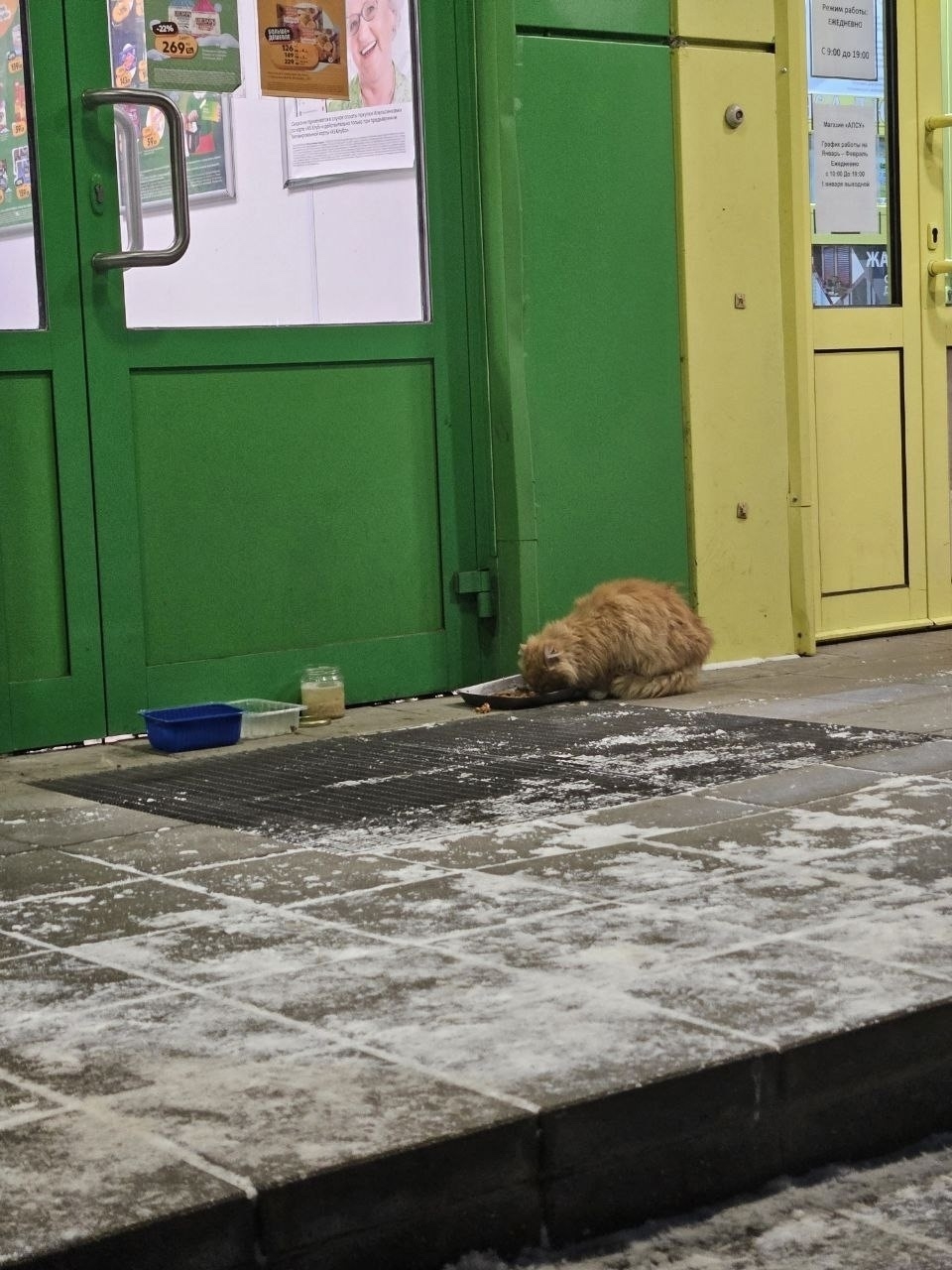 Киржач Кошечку, живущую у магазина без укрытия зимой в морозы на..