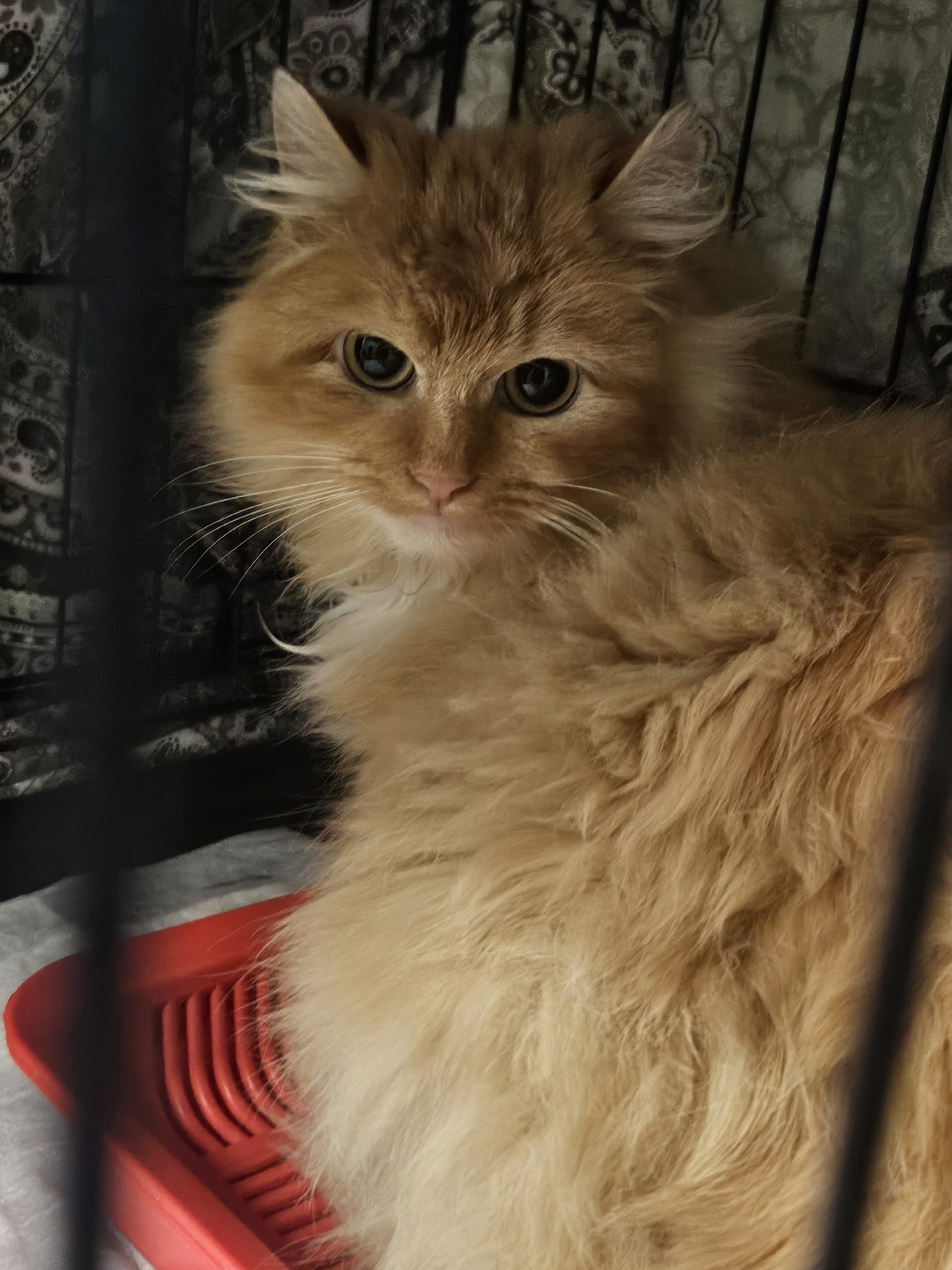 Кошечку, живущую у магазина без укрытия зимой в морозы на холодном бетоне , удалось поймать и спасти .Сейчас она находится в клиннике в клеточке в ожидании стерилизации. Ищем дом и самые ответственнее ручки для рыжей красавицы.