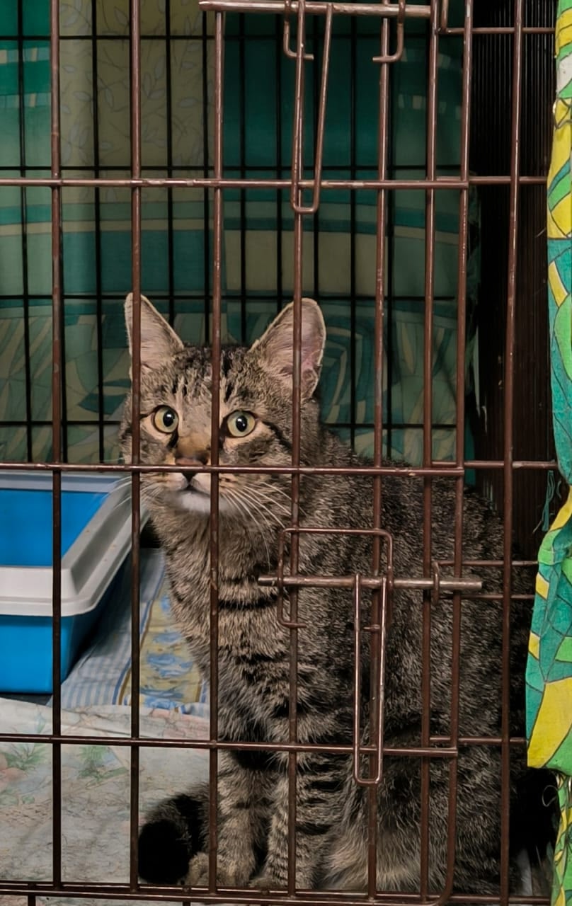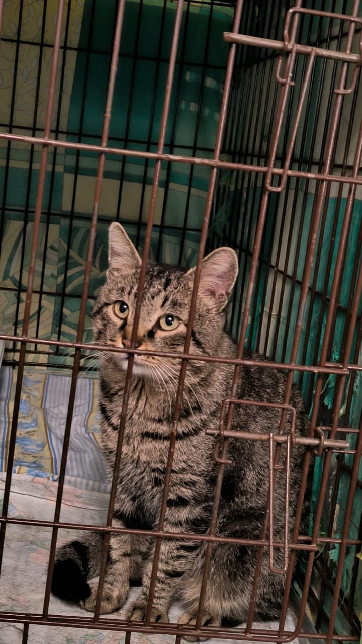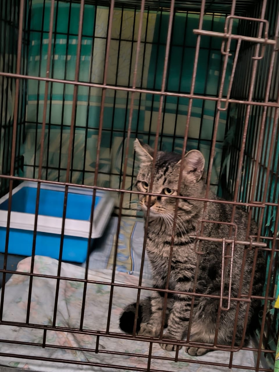 Котик, конечно, страдает в клетке после вольной жизни на улице, но мы-то понимаем, что на носу зима, морозы и лучше временно посидеть в клеточке, чтобы потом переехать в тёплый дом к любящим людям, чем остаться на свободе, где холод, голод и куча опасностей вокруг!