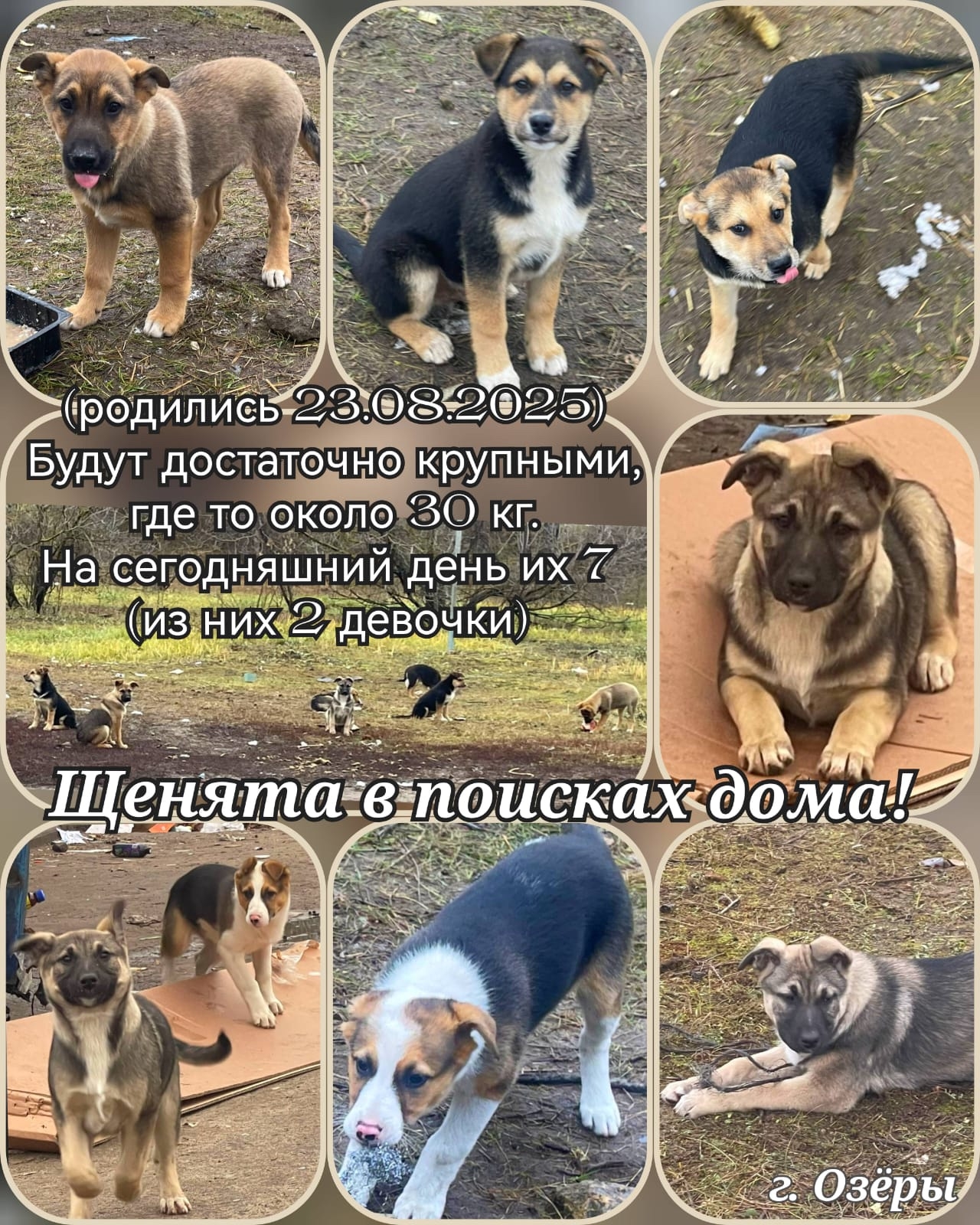 Коломенский городской округ . 7 щенков ,рождены 23 августа ,мамка -домашняя.Живут на улице,под плитами ,скоро зима ,детки мерзнут ((Неравнодушные люди подкармливают их .Щенки очень контактные, дружелюбные. Есть и крупные ребята и поменьше,2 девочки и 5 мальчиков .Двоим посчастливилось и их забрали домой. Может еще кому счастье улыбнется.