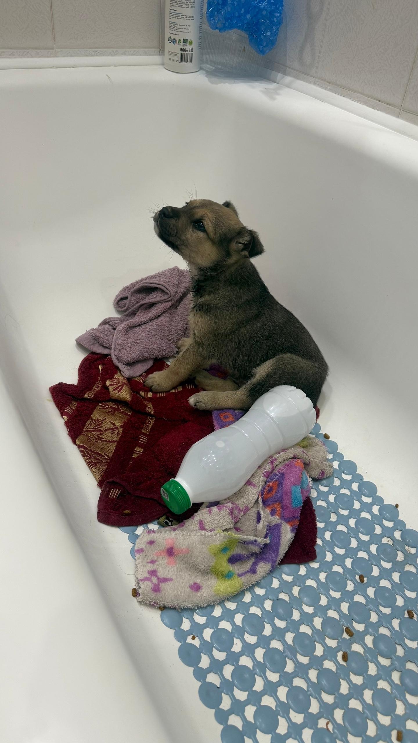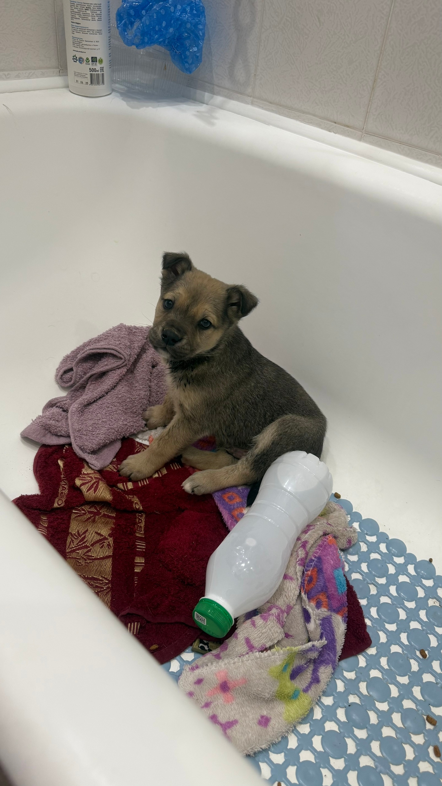 Найден щенок на дороге промерзший, совсем малышок. Дома отогрели чистенький, активный,по виду здоровый.