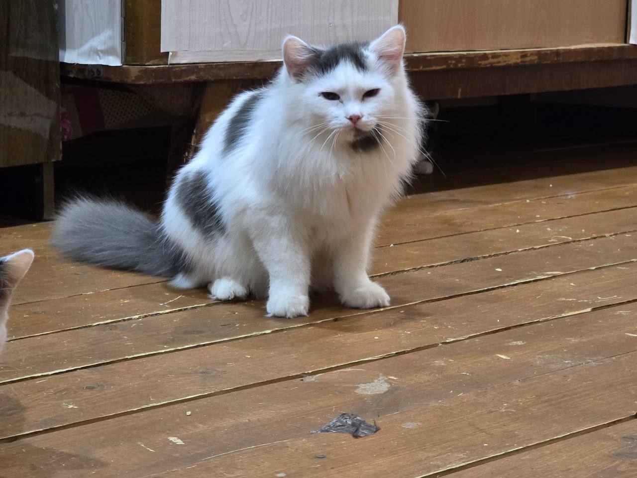 И вот в один из дождливый день она вернулась с подросшими котятами обратно. Пеструшу и 3 котят пожалели и выделили комнату в доме. В связи с семейными обстоятельствами нет возможности ездить постоянно на дачу, а взять всех в квартиру тоже не получается.