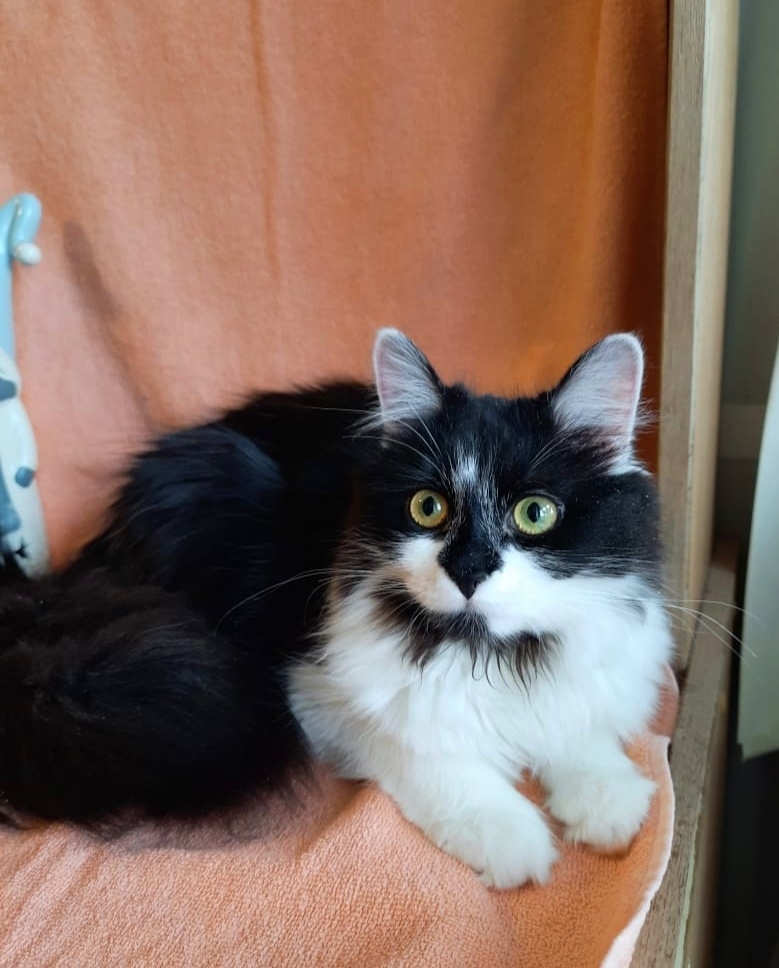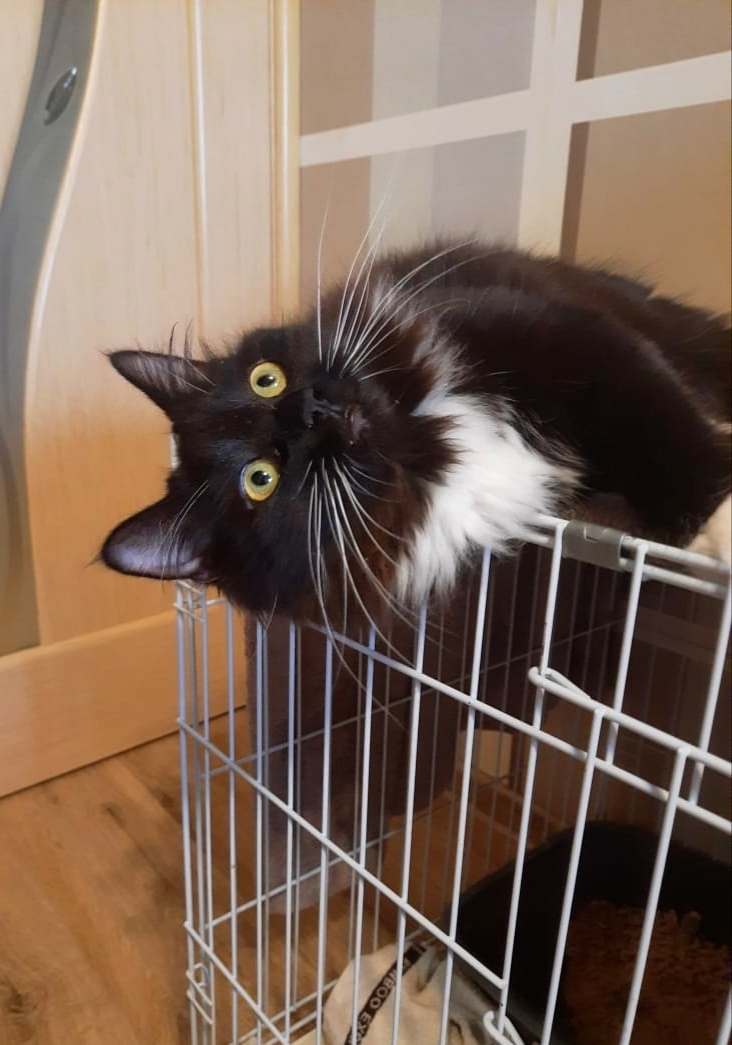 Малышка – чёрно-белая девочка – более тихая. Ведомая в паре. Вечно взъерошенная, как маленький домовёнок.