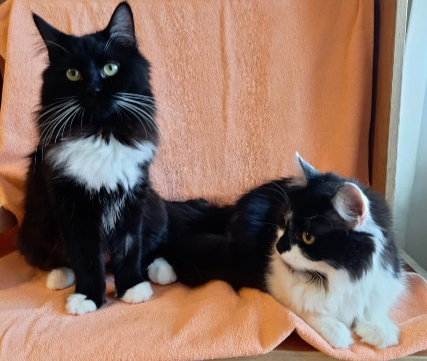 Чернушка – более чёрная девочка с изумрудными глазками – заводила в этой паре. Любопытная и бесстрашная. Все проказы начинает она, весёлые тыгы-дыки её конек. Всегда намыта, ухожена, с идеальной укладкой.