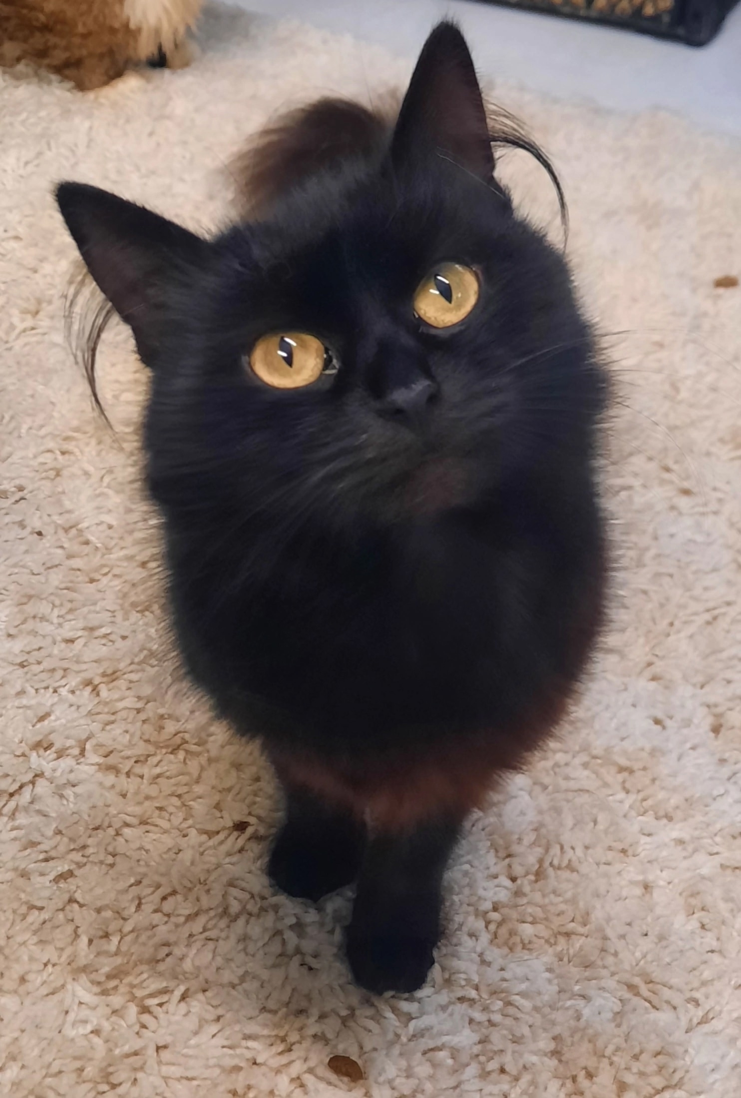 Эта элегантная красавица с угольно-чёрной шерстью и пронзительными жёлтыми глазами никого не оставит равнодушным! Возраст – всего до 2 лет, стерилизована, привита – идеальна во всех отношениях!