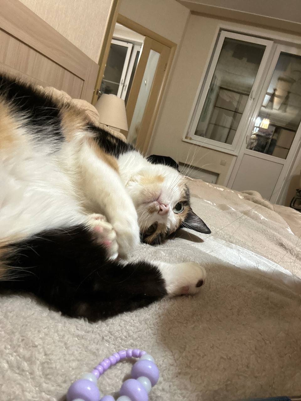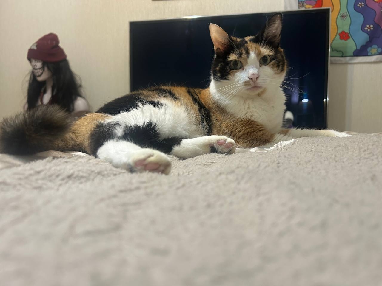 Спокойная, размеренная, любит лежать кверху пузиком, а носиться не любит. Был позитивный опыт коротких прогулок на шлейке