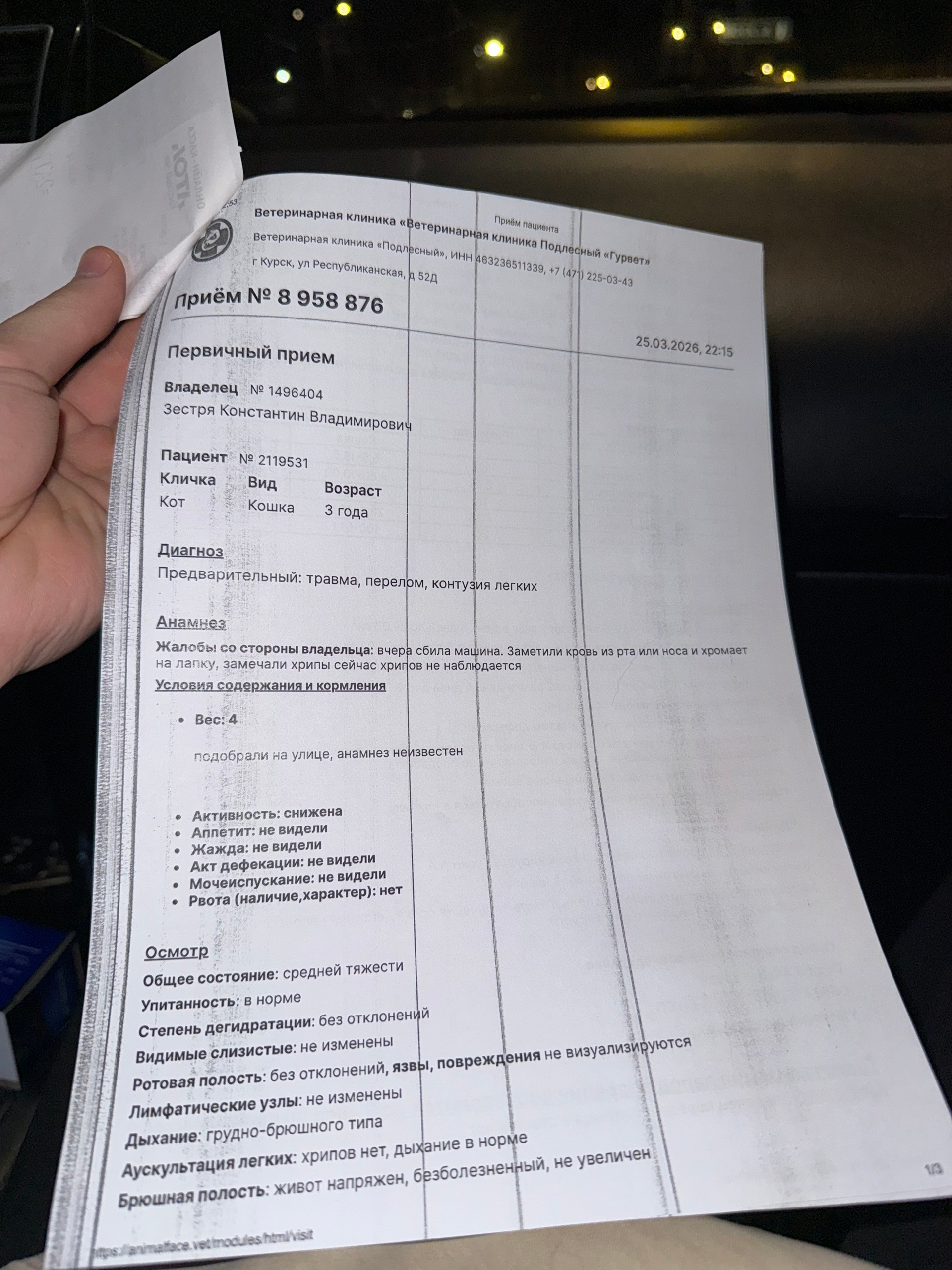 Кот попал под колеса, домашний, помогите собрать на лечение… Курск Автор admin Опубликовано Мар 26, 2026 0 0 Поделится WhatsAppViberTelegramVKOK.ru Кот попал под колеса, домашний, помогите собрать на лечение. Отчет и чеки могу скинуть всем желающим. Карта 2200 7010 0935 9990 0 0 Поделится