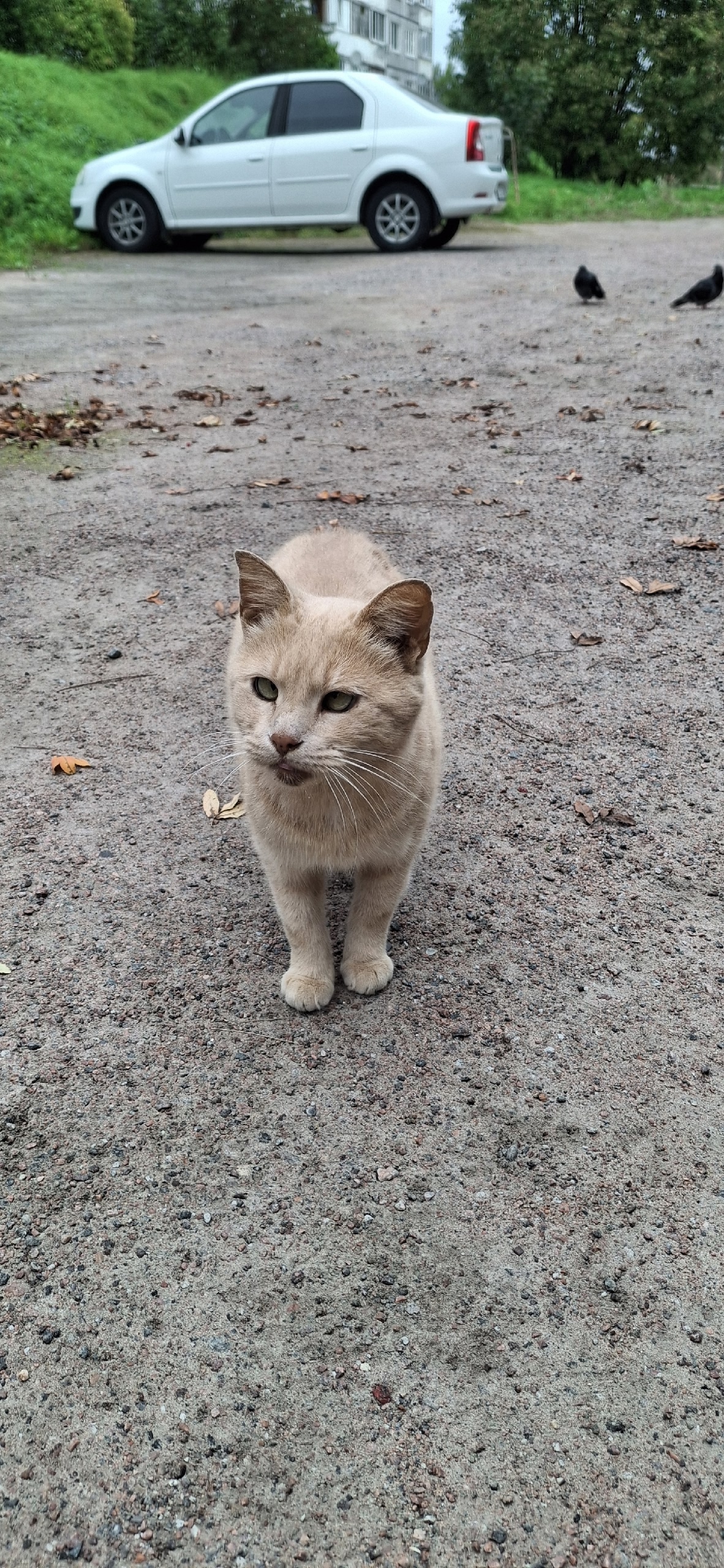 Кот с косоглазостью, слышит не особо хорошо, вероятно после травмы. Обретается На Победы. Ласковый, чистый, немного пугливый.