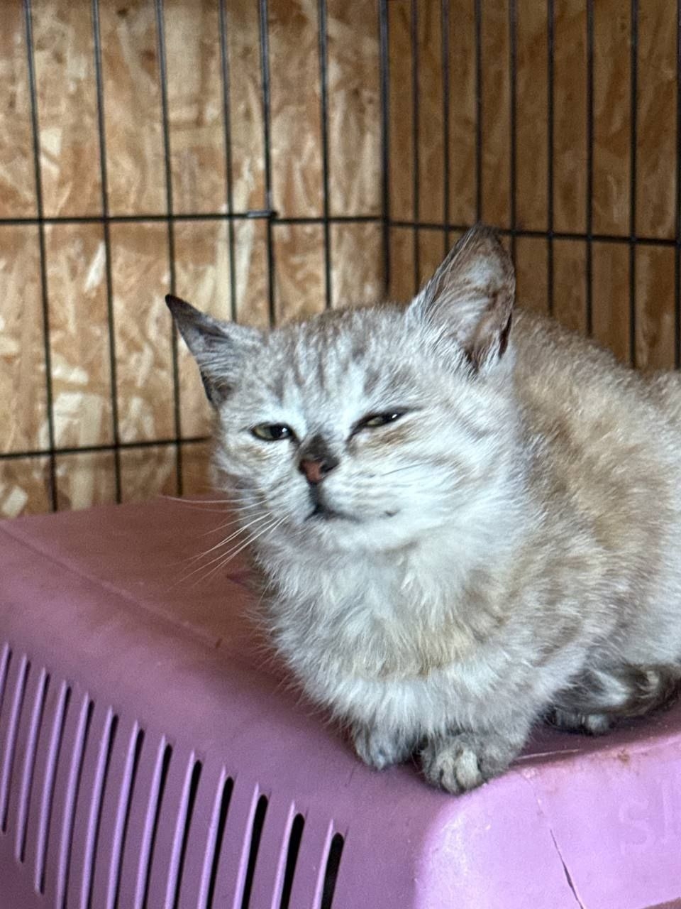 Котенка спасли с улицы. Он был на осмотре у ветеринара и уже готов..