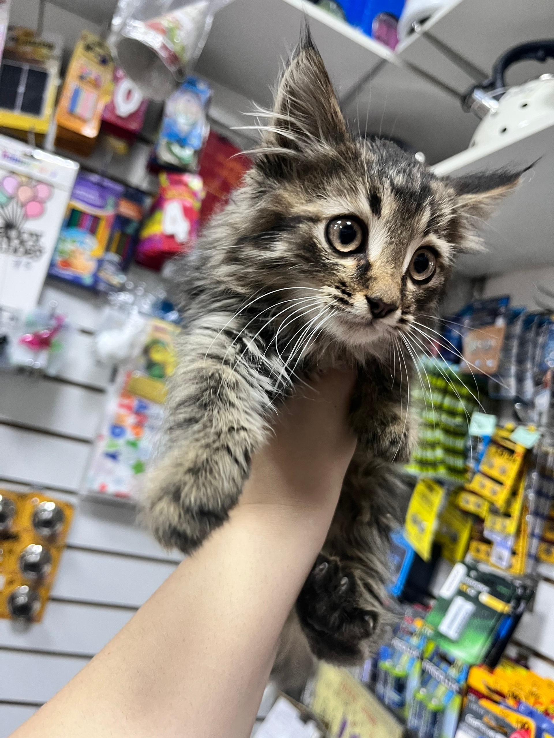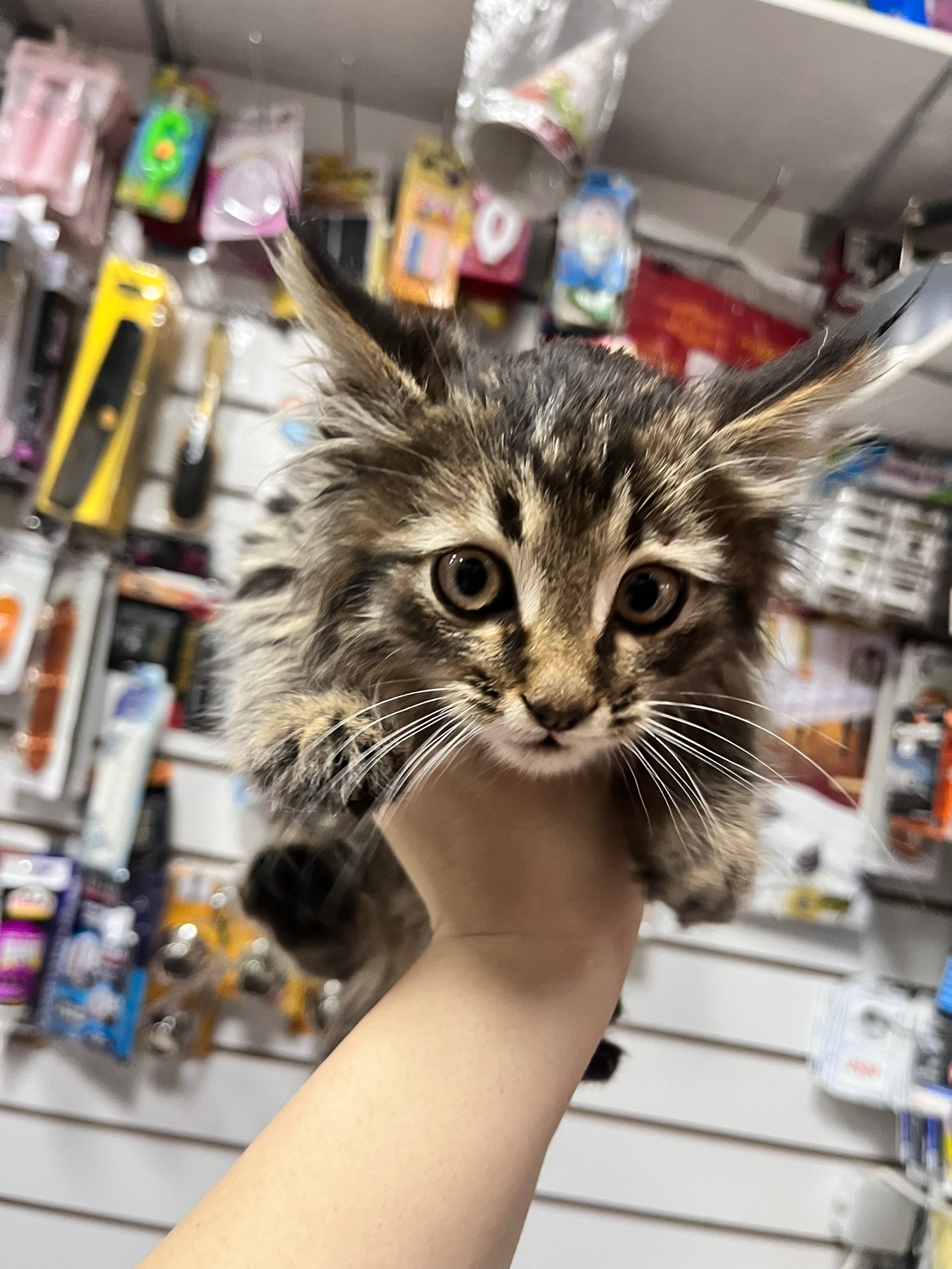Котенок ищет любящих хозяев❤️ Очень красивая девочка, на ручки идет, но чуть чуть с осторожностью (из-за своей истории). Примерно где-то месяца 3 ей. Очень красивого окраса серого, глаза с окантовкой белого цвета😍, глазки зелено-желтые, подушечки лап черненькие , носик с черной окантовочкой, пушистенькая девочка🥰. Искупала . Нашла я её вчера, она 2 дня сидела под машиной (точнее в капоте на моторе автомобиля). Девочка мяукала от голода и холода. У нас на районе не было таких котят, скорее всего она приехала на этой же машине от куда-то или прибежала от куда-то. Я её взяла к себе на работу , но здесь у меня и так кошечка живет и не принимает котенка шипит на неё. Дома у меня кошечка и собака тоже нет возможности взять к себе на передержку . Если есть у кого-то возможность взять на передержку возьмите пожалуйста 🙏🏻.