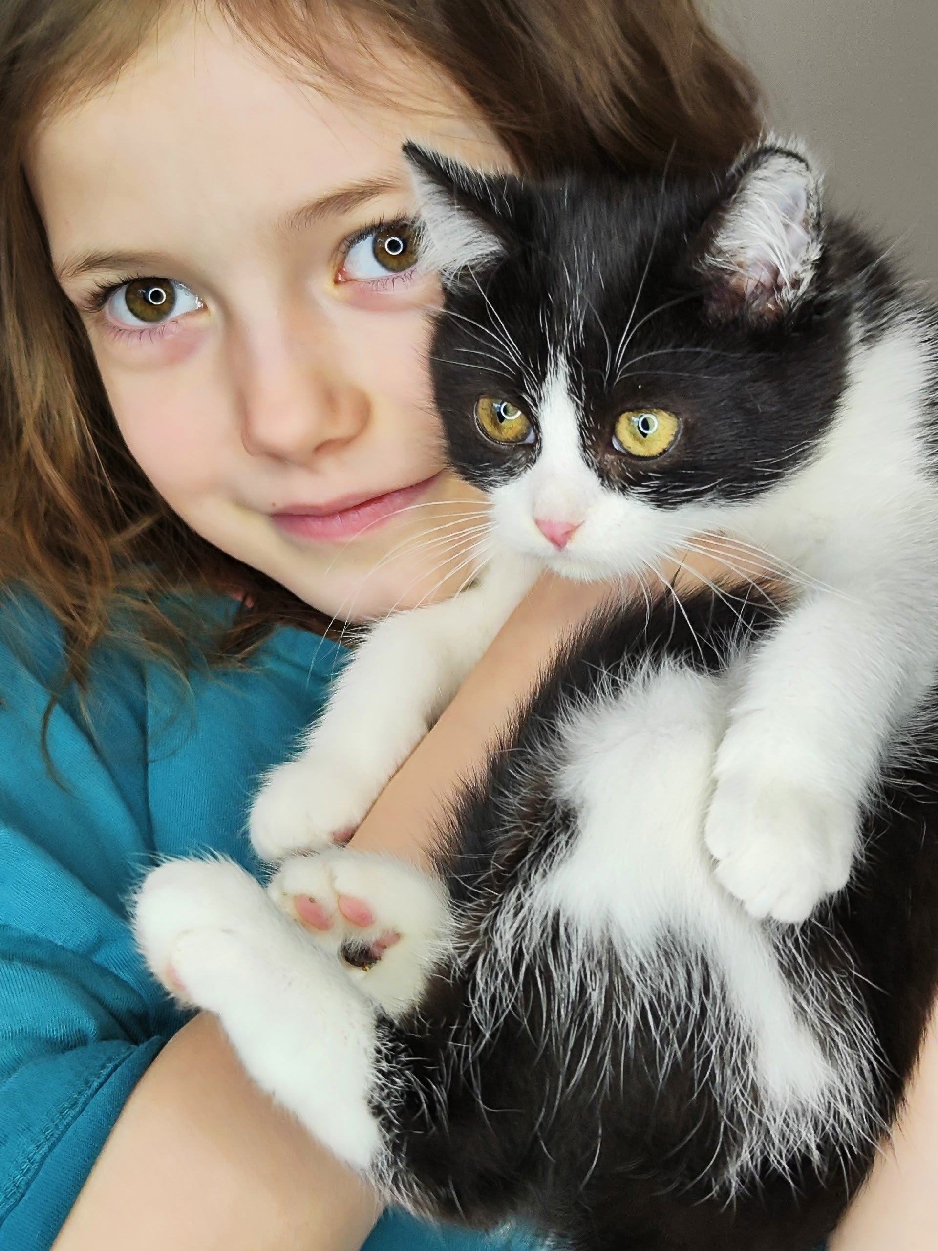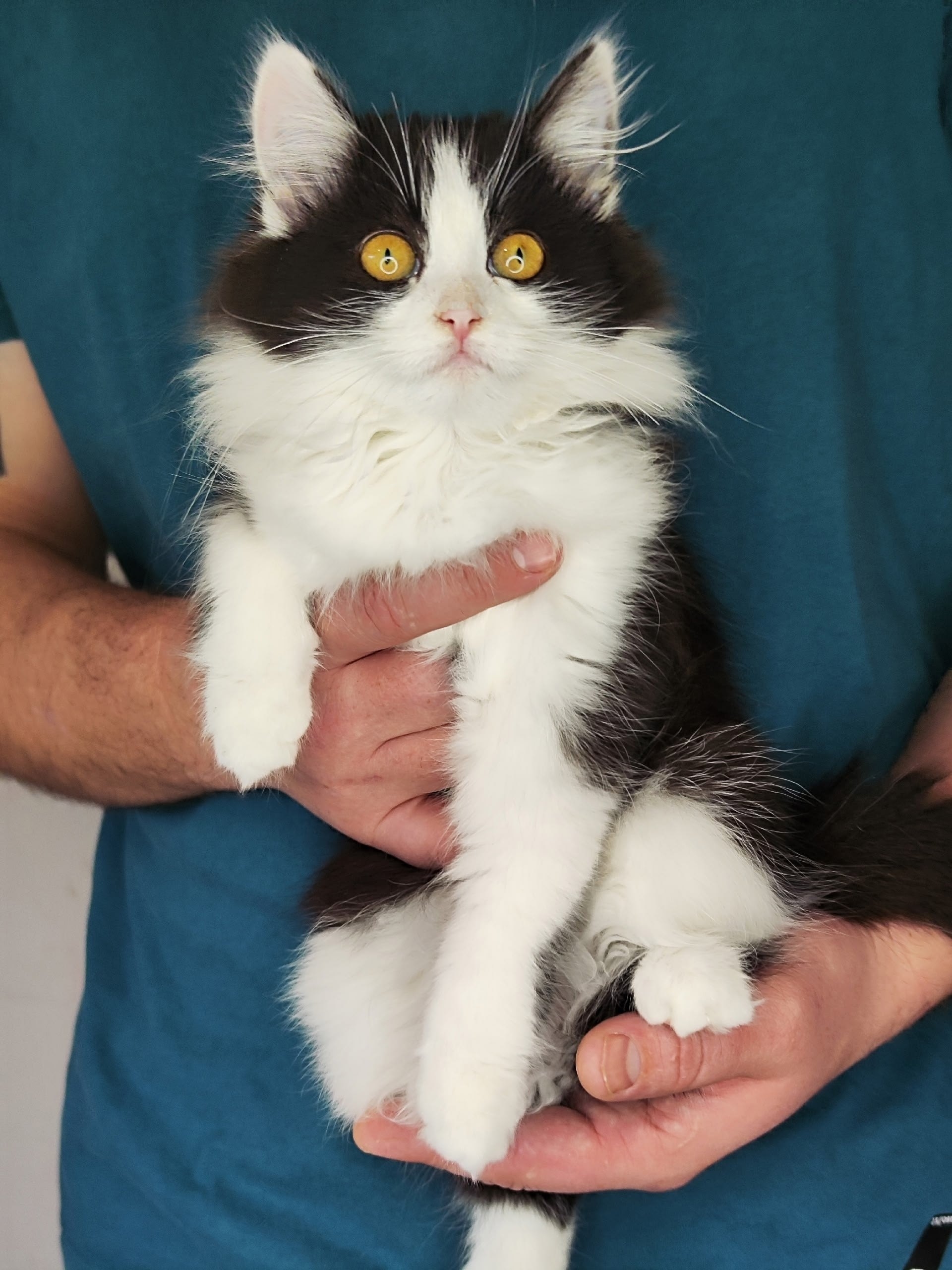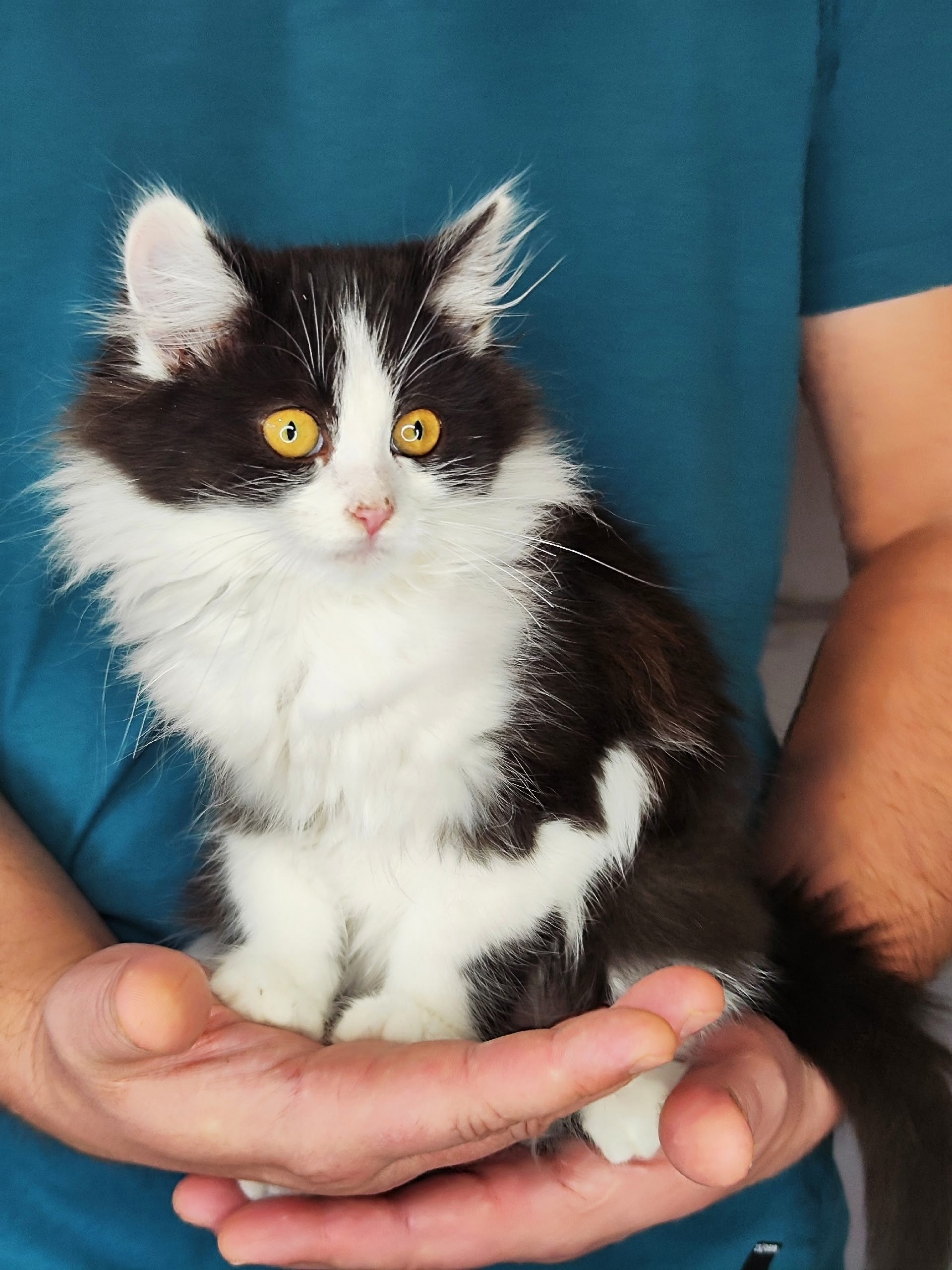 🤍 девочка чёрно-белая пушистая, самая кукольная из всех, будет ну просто сногсшительной красоткой. Очень ласковая, любит играть с ребенком, активная. Хорошо кушает сухой корм, знает лоток, 2,5 мес, обработана