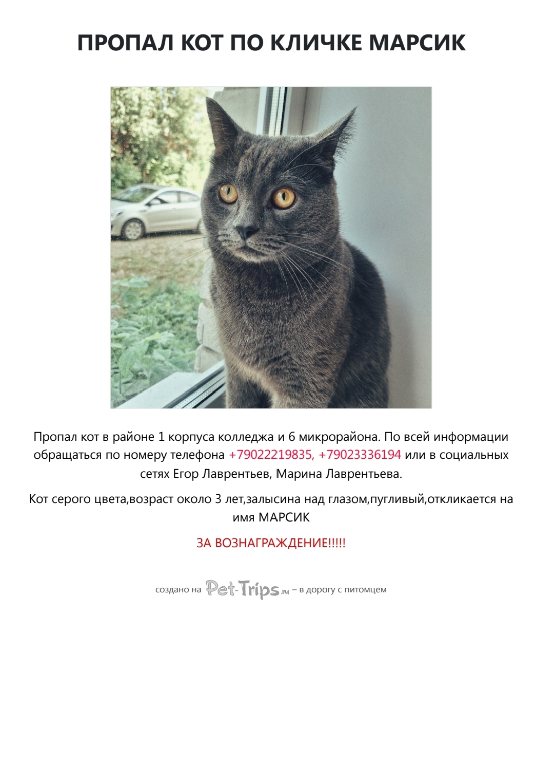 Коту требуется дорогостоящее лечение и специальный корм,котик наш болеет сахарным диабетом.Просьба нашедшим срочно сообщить у него режимное питание,сейчас оно нарушено,он может погибнуть‼️‼️‼️‼️‼️‼️‼️