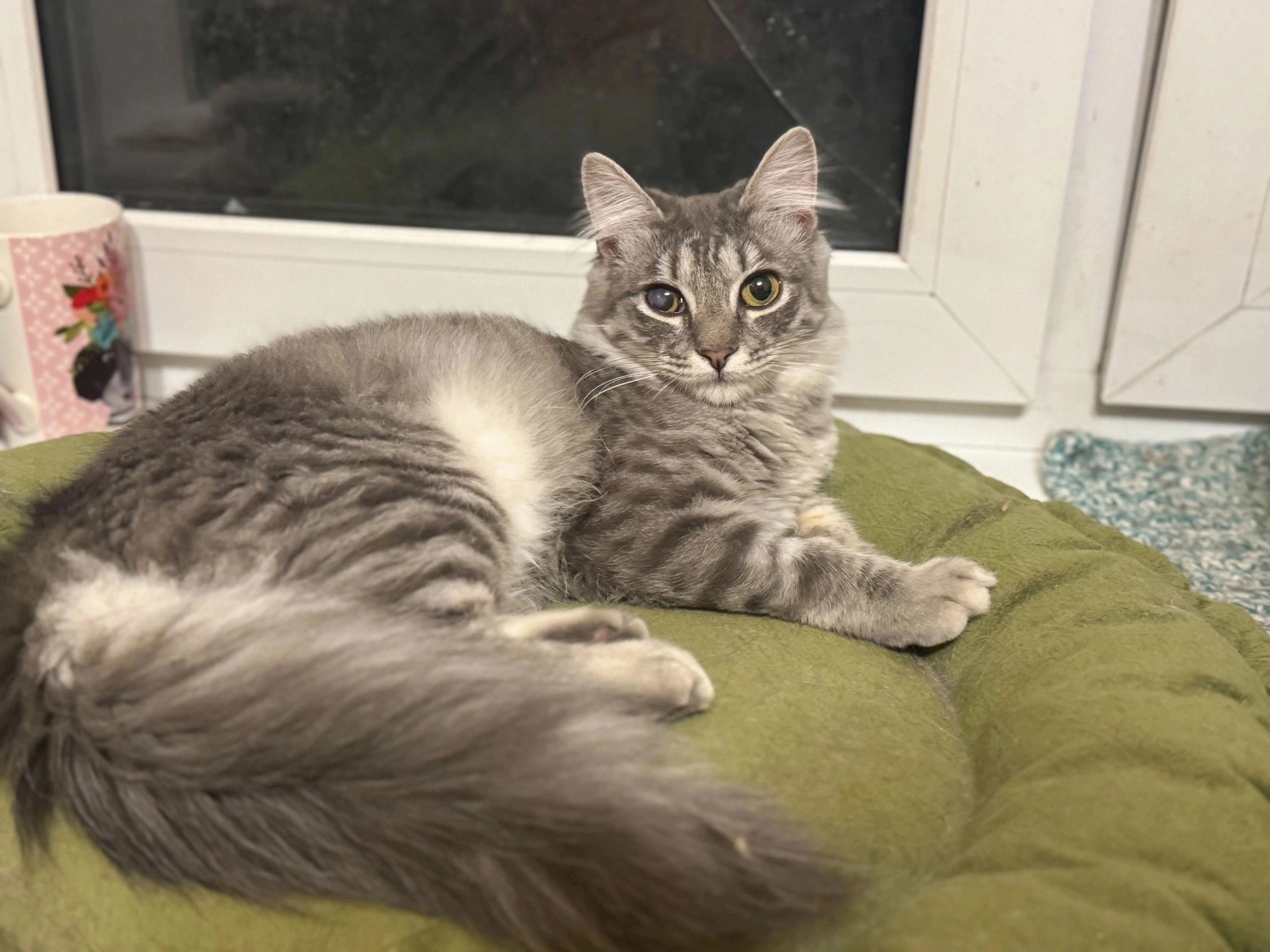 Очень озорной! Был найден маленьким котенком в Брагино. Обработан от паразитов ,привит, кастрирован. Возраст примерно год.