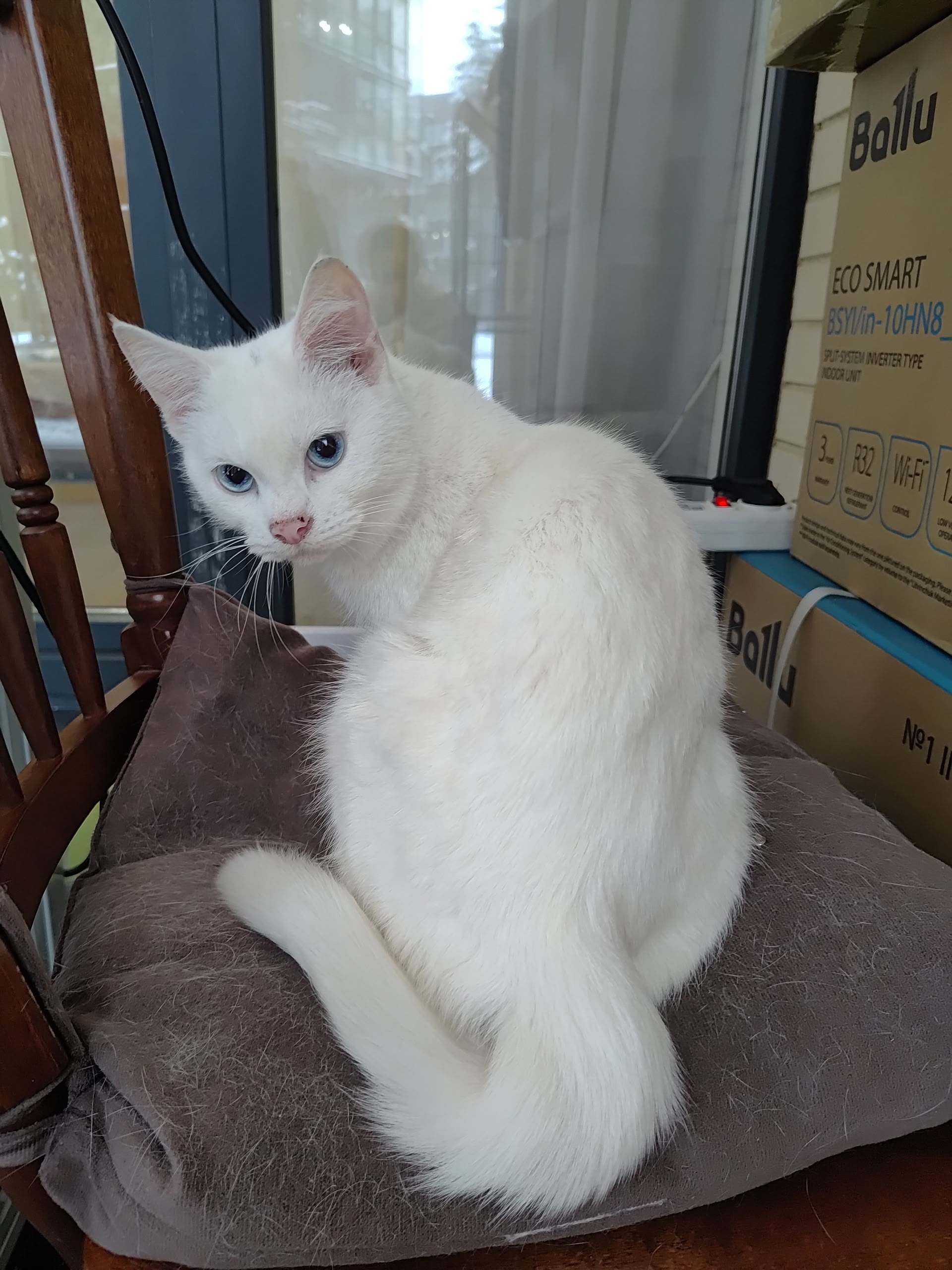 Когда животные умнее.После смерти хозяйки их выставили на улицу,на мороз.Одного кота оставили.Он пошел гулять,нашел и привел вот эту кошечку.А вторая так и пропала.Их расскидали в разных местах.Ей свыше видимо дали второй шанс.Взяла одна добрая женщина,но у нее много своих.Пожалуйста дайте ей шанс.Это зимняя белоснежка с голубыми глазами.Очень ласковая.+7 915 176-25-63