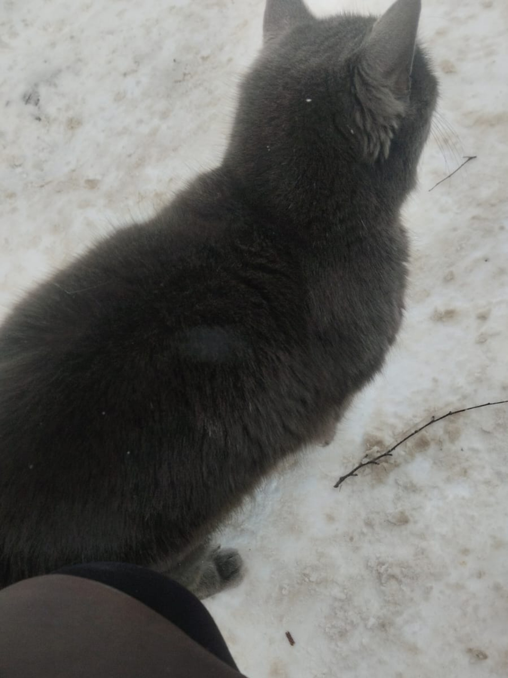 Бывшедомашняя кошка, красивая, похожа на породистую. Вроде бы, стерилизованная. Совершенно ручная, домашняя. Выживает на улице, иногда прячется во дворе дома, где раньше жила. Хозяин её в дом не пускает, не кормит, кошка ему не нужна. Она бегает по улице, плачет, бросается к каждому прохожему за помощью. Кошечка истощена, голодает, замерзает на улице 😫