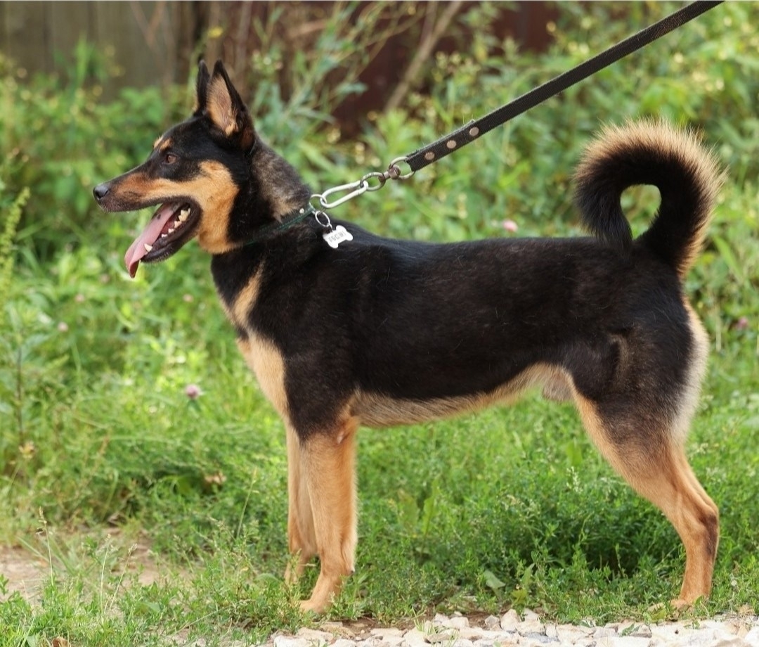 Ладит с сородичами, знает машину, поводок, знает несколько команд…