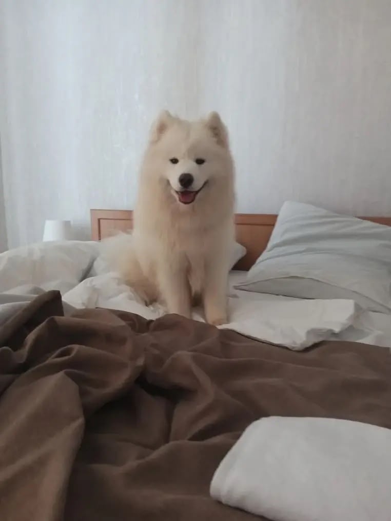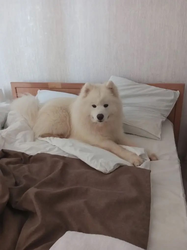 Ленинский район . Шунды . Тропа здоровья . Потерялся самоед , молодой кобель . Не агрессивный . Видели на тропе здоровья в Южный парк бегал с черной собакой . Сообщите пожалуйста если увидите или придержите . Спасибо !